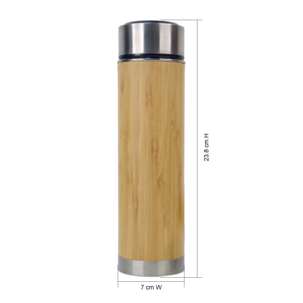 Double wall in high borosilicate glass bottle and bamboo lid with tea infuser Leakproof Product Size 7 x 23.8 Cm | Capacity 500 ml. Printing Options UV Screen Print Engravin