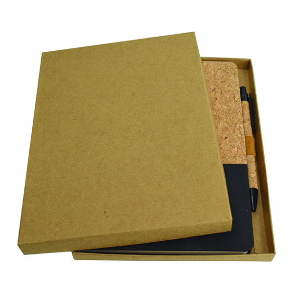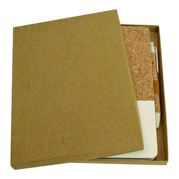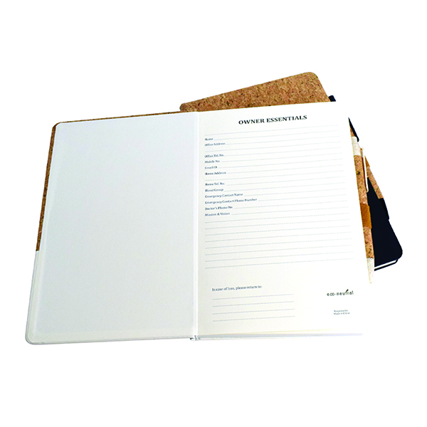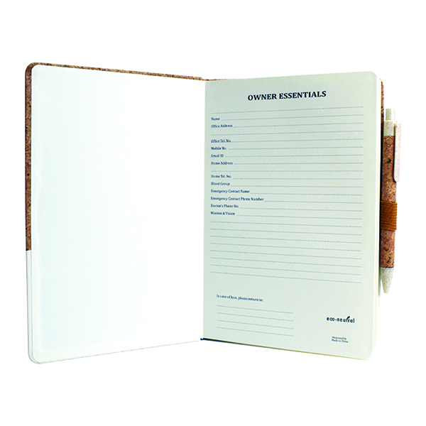 A stylish notebook in natural cork and elegant PU with elastic tape closing Product Size 155x 210x20 mm Printing Options Screen Print UV Printing Debossing