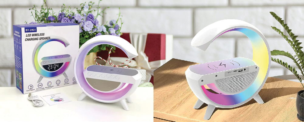 Technical Parameter Wireless charging power 15W Bluetooth version 5.3 Bluetooth name BT3401 Output power 5W Bluetooth frequency 2.4GHZ2.48GHZ Transmission distance 10 meters Frequency sound range 50 HZ20 KHZ Sigto noise ratio of whole machine greater than 75 db Builtin lithium battery voltage 3.7V charging input DC5V/500MA Packing Box Size 247*240*87 mm Product size 235 * 80 * 238 mm Product weight 770g Printing Option Screen
