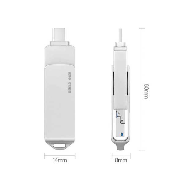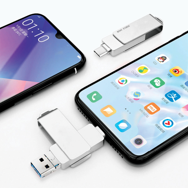Metal Compatible with Multiple Devices 360 Rotation 3in1 Flash Drive Android / TypeC / Computer Universal Material Mertal Capacity 4|8|16|32|64 GB| Product Size 60x15x9mm Printing Option Engraving UV Printing Screen Printing