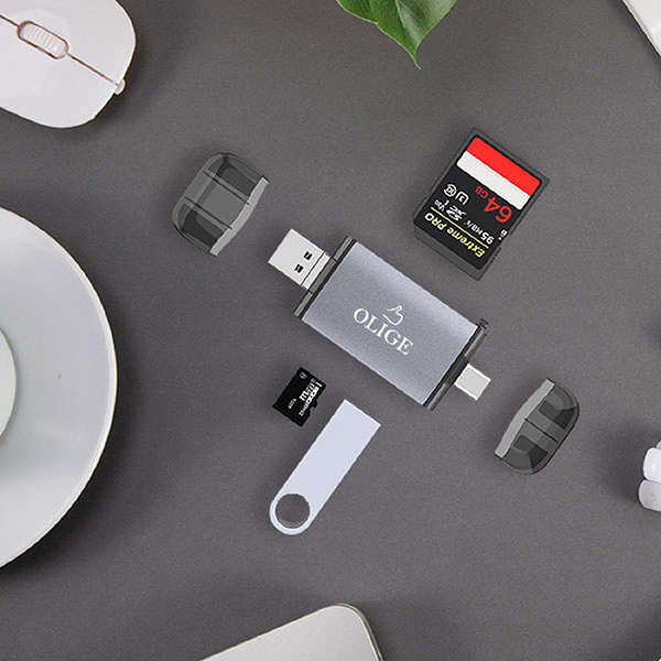 SD Card Reader 6in1 3 Interfaces TypeC/ USB/Micro | 3 Port Reader SD/TF/USB Trail Camera Viewer for Samsung Galaxy/Note S20/10Android PhoneMacBook iPad Air/ProWindows Computer and Dash Cam Product Size 90x125x250mm Printing Option UV Printing Screen Printing