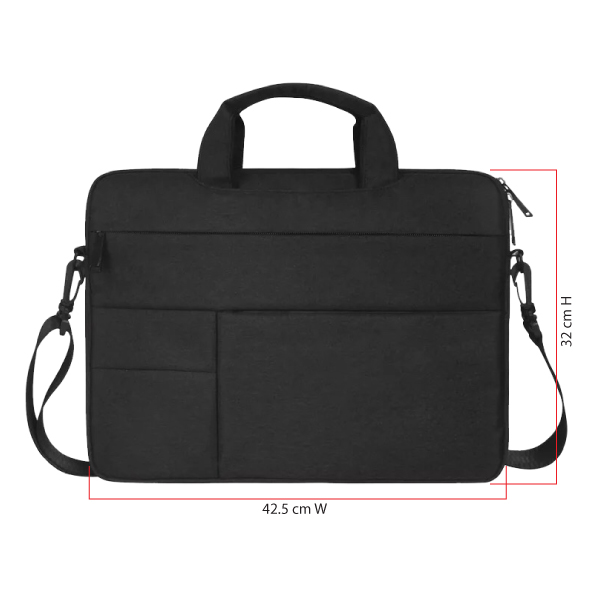Lightweight and stylish laptop shoulder bag perfect for protecting your tech onthego Multifit laptop cradle securely holds laptops and devices. Additional file section and mesh pockets for clever compact storage Product Size 425x320mm Printing Option Screen Printing