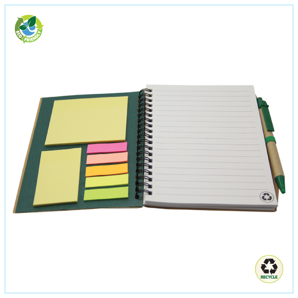 These natural colour Notebooks feature a diecut environment friendly for a clean surrounding Notebook includes a matching ball pen ruled paper and an additional sheet of sticky notes. Product Size 180 x 141x 15 mm