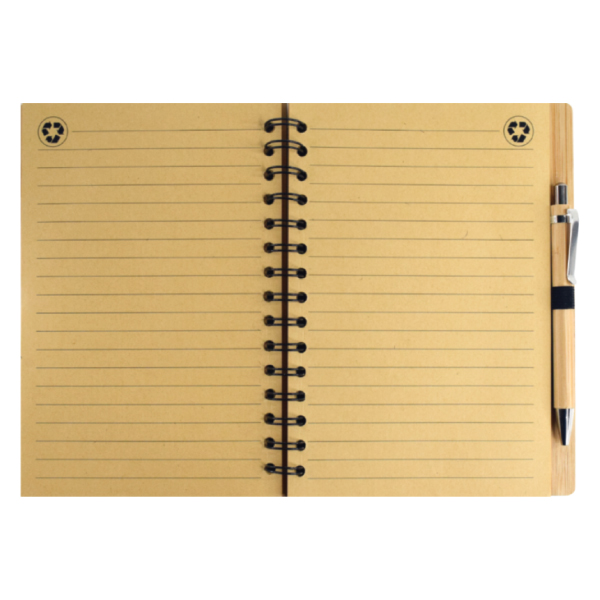 Natural Bamboo Cover Notebook with Pen lined paper with recycled individual can be personalized with company name thru print or engraving Product Size 155x 210x20 mm Printing Options Screen Print Engraving
