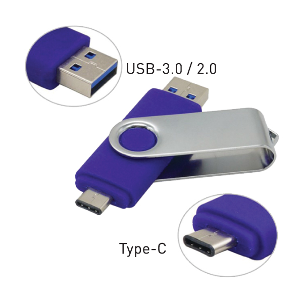 Smart Electronic Swivel OTG TypeC USB Flash Drive TypeC to USB For Smart Phones. Material Metal + Plastic Capacity 4|8|16|32|64 GB| Product Size 70x20x10mm Printing Option Engraving UV Printing Screen Printing