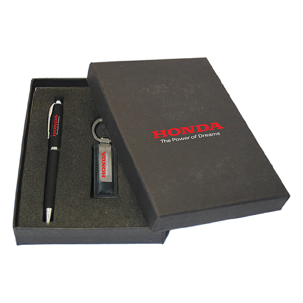 AMP038 Metal Pen with Stylus AKE11 Metal with Leather Keychain Packing Top Small Gift Box Size 17x14.5x2.6 cm