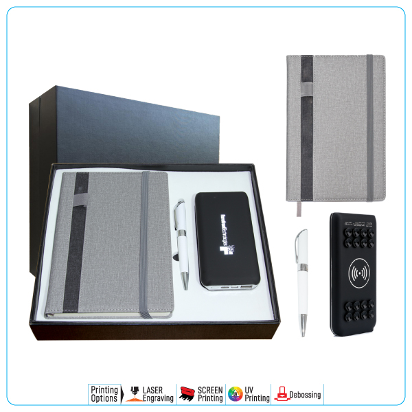 AN03 A5 Size Notebook Grey AMP0331 Metal Twist Ball Pen HM080 Powerbank Lightup logo Packing Magnetic Gift Box Size 28.3 x 23.8 x 5 cm