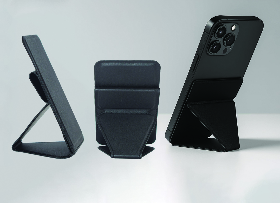 Magnetic, foldable phone stand, compatible with Mag- Safe-enabled iPhones A powerful new assistant in your digital life., Premium Materials and, Classic Colours The soft vegan leather not only feels smooth to the touch, but is also eco-friendly
