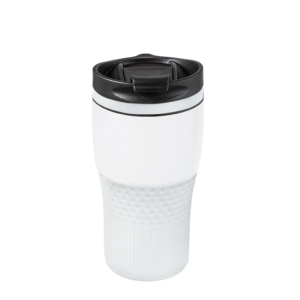 A 320ml capacity premium quality matt stainless steel thermal mug with antifingerprint paint. Double wall mug that can hold and cold drinks for 46 hours. Leak proof with trendy design. Silicon Grip and Ring can be customized with your desired colors. Perfect for office home or travel. Product Size 92(Dia.) x 164(H)mm Packaging White Paper Box