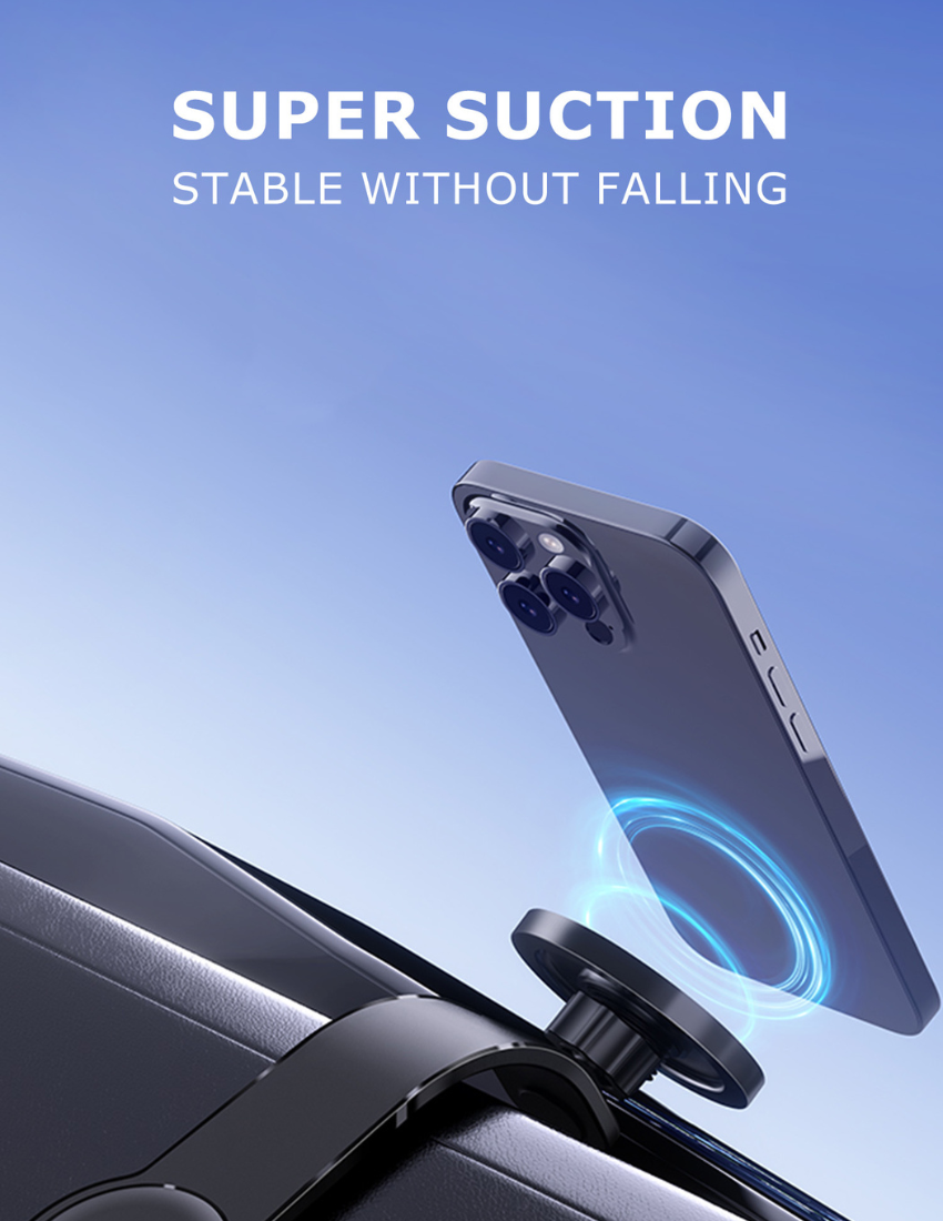 360? free rotation magnetic phone holder in soft aluminium alloy. Flexible bendable and adjustable angle phone holder that is easy to assemble and install. Product Size 23x6x3.8cm. Packaging Paper box