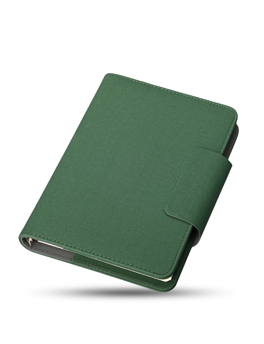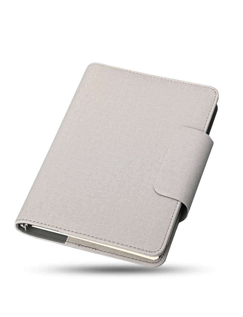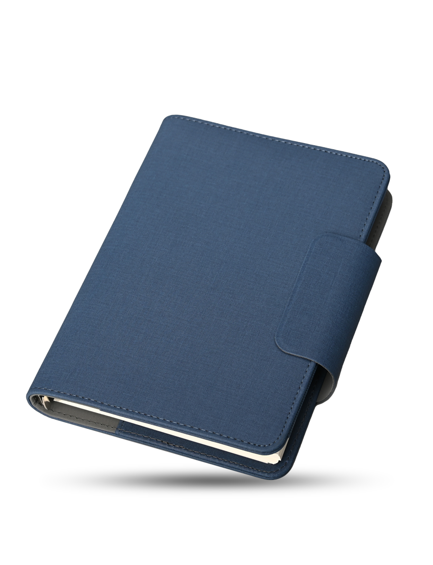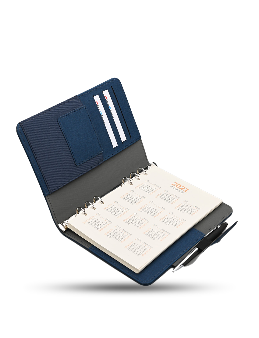 A5 80 sheets Binder Organizer in special PU material. Has 2 year Calendar on the first sheet with Pen holder and magnetic flap closure. Product Size 22.6x18x2.2cm Packaging Black Paper Box