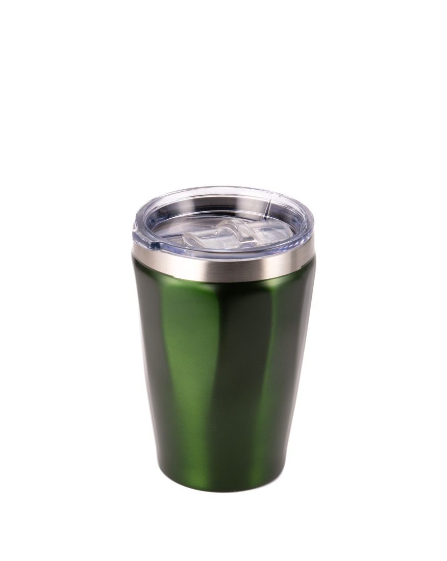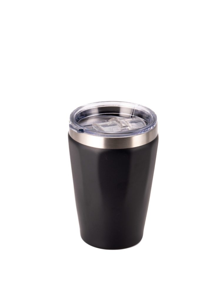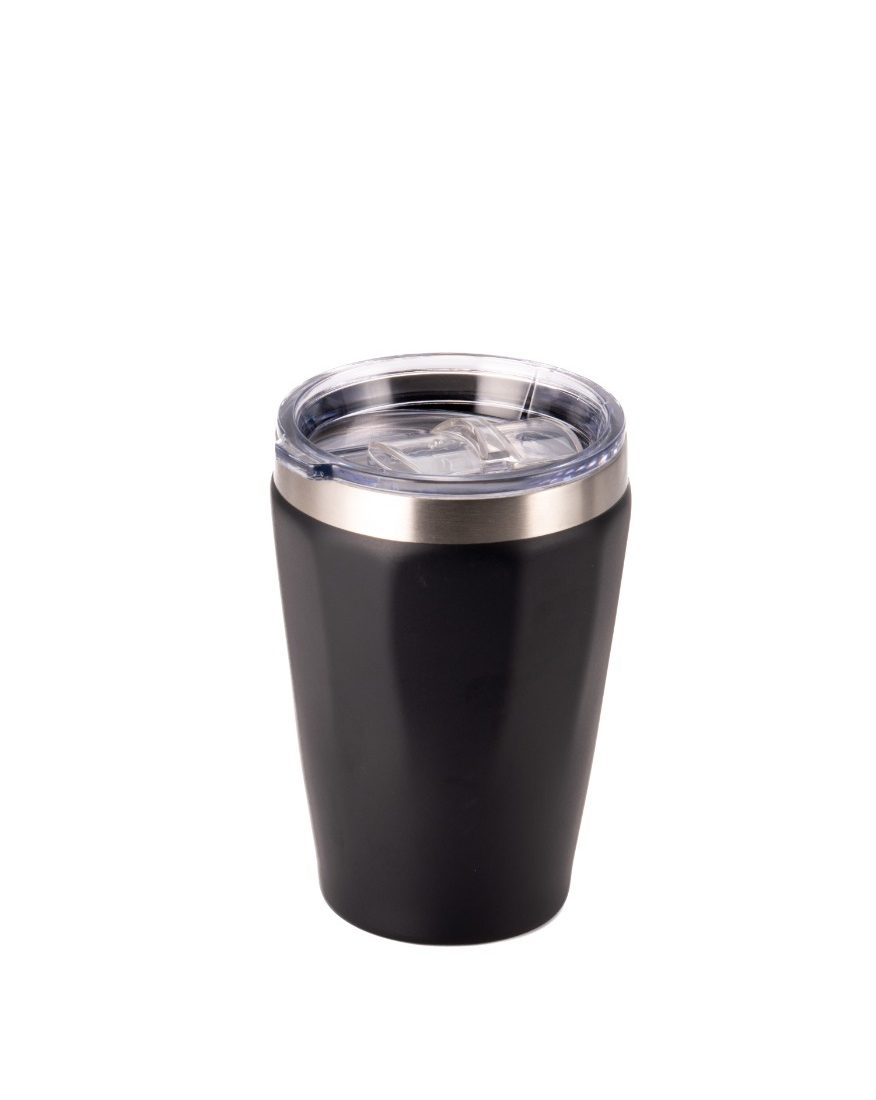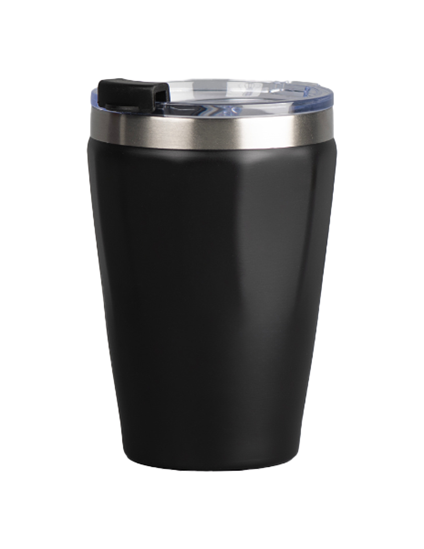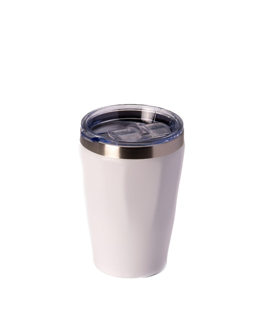 Double wall geometric shape mug suitable for all kinds of hot and cold drinks made from recycled stainless steel material. Product Size 13x8.8 cm (diameter). Packaging Kraft Paper Box