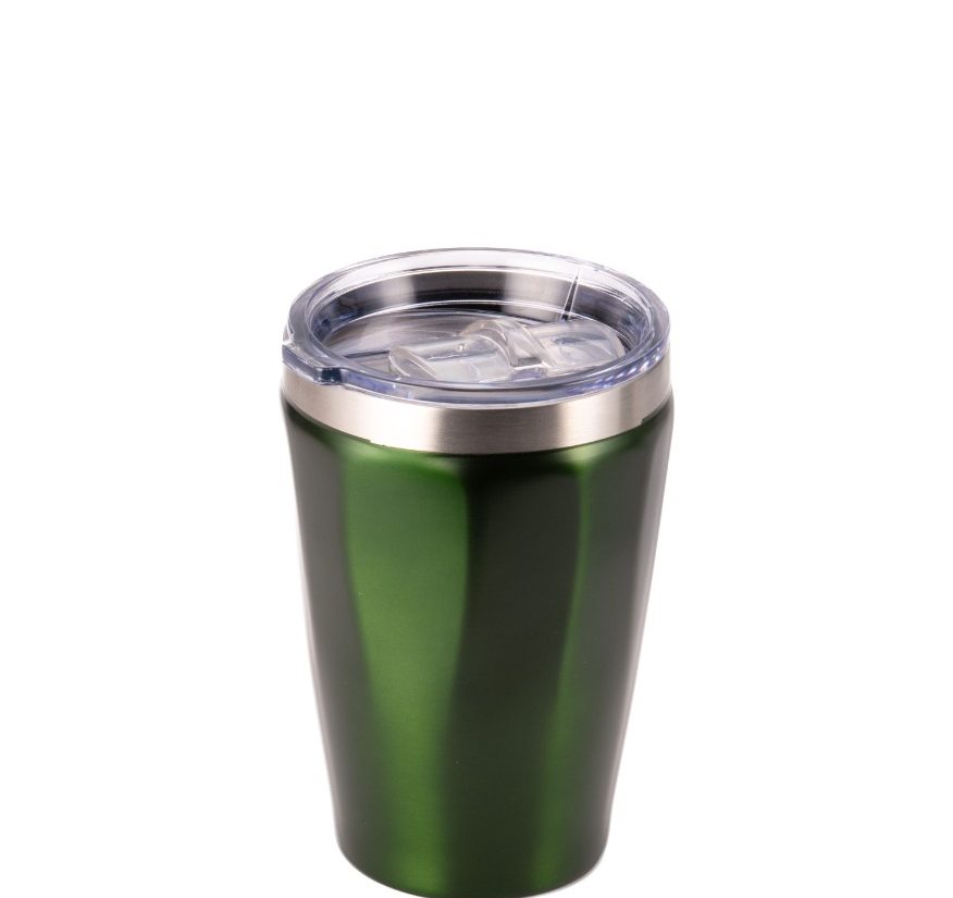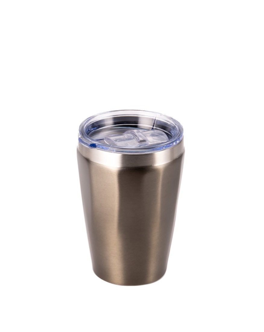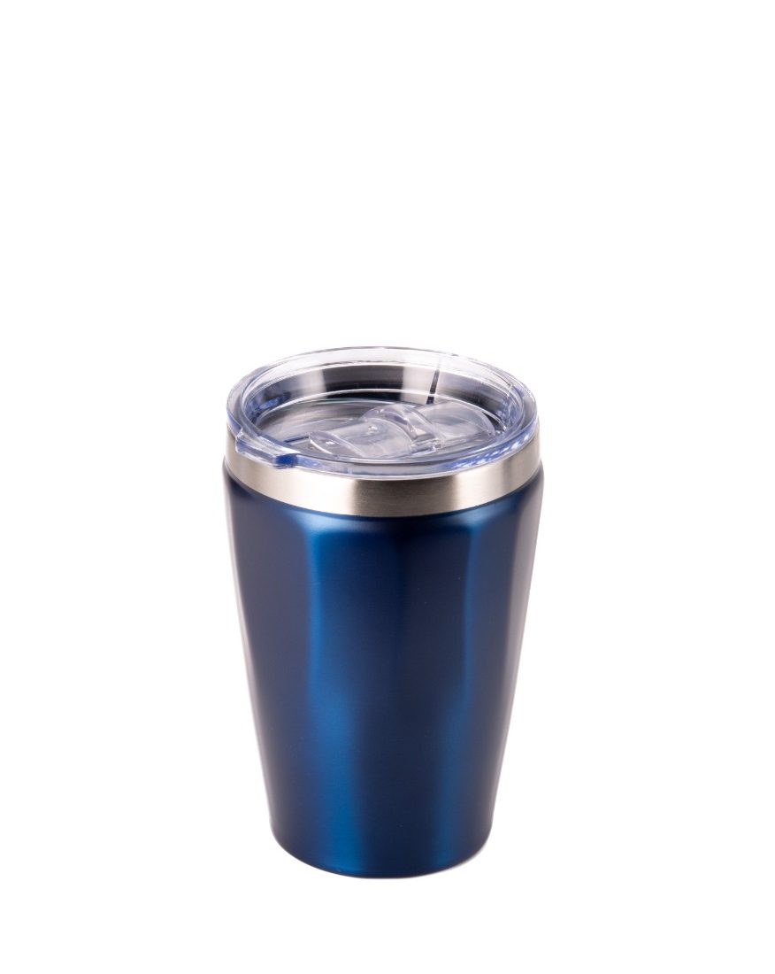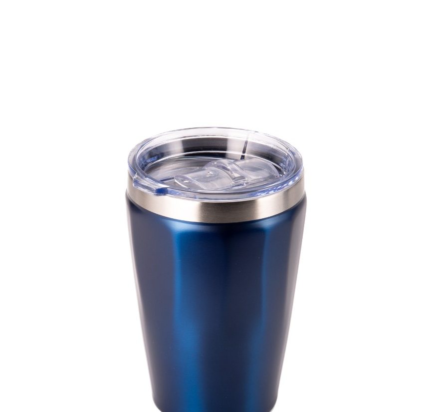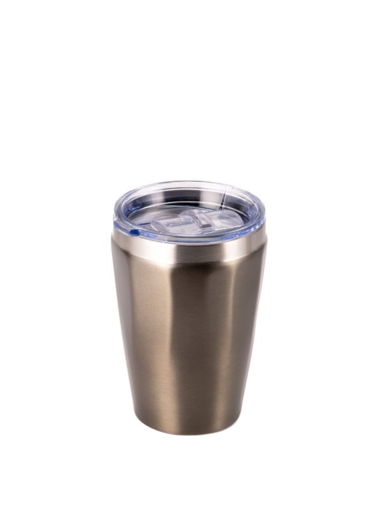 Double wall geometric shape mug suitable for all kinds of hot and cold drinks made from recycled stainless steel material. Product Size 13x8.8 cm (diameter). Packaging Kraft Paper Box
