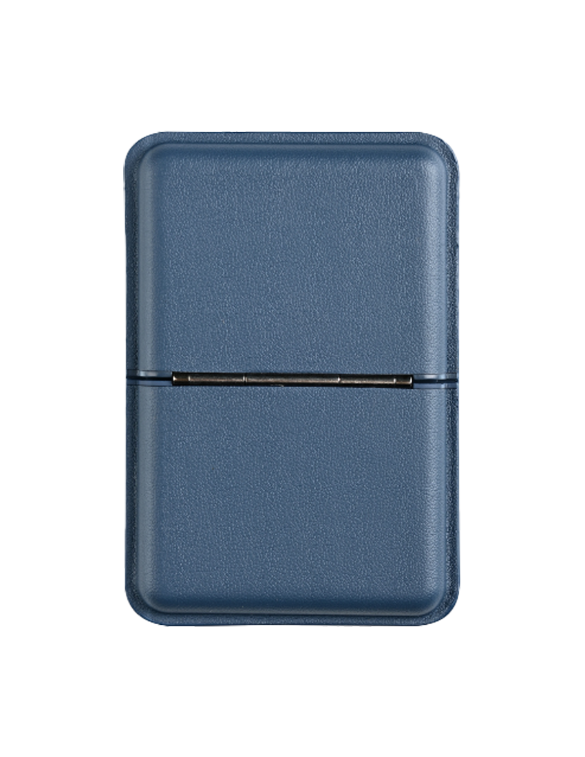 RFID Magnetic Card Holder phone stand in recycled PURCS material. Can fit up to 3 cards and stand in different angles. Product Size 9.6x6.5x0.85cm. Packaging Black Box