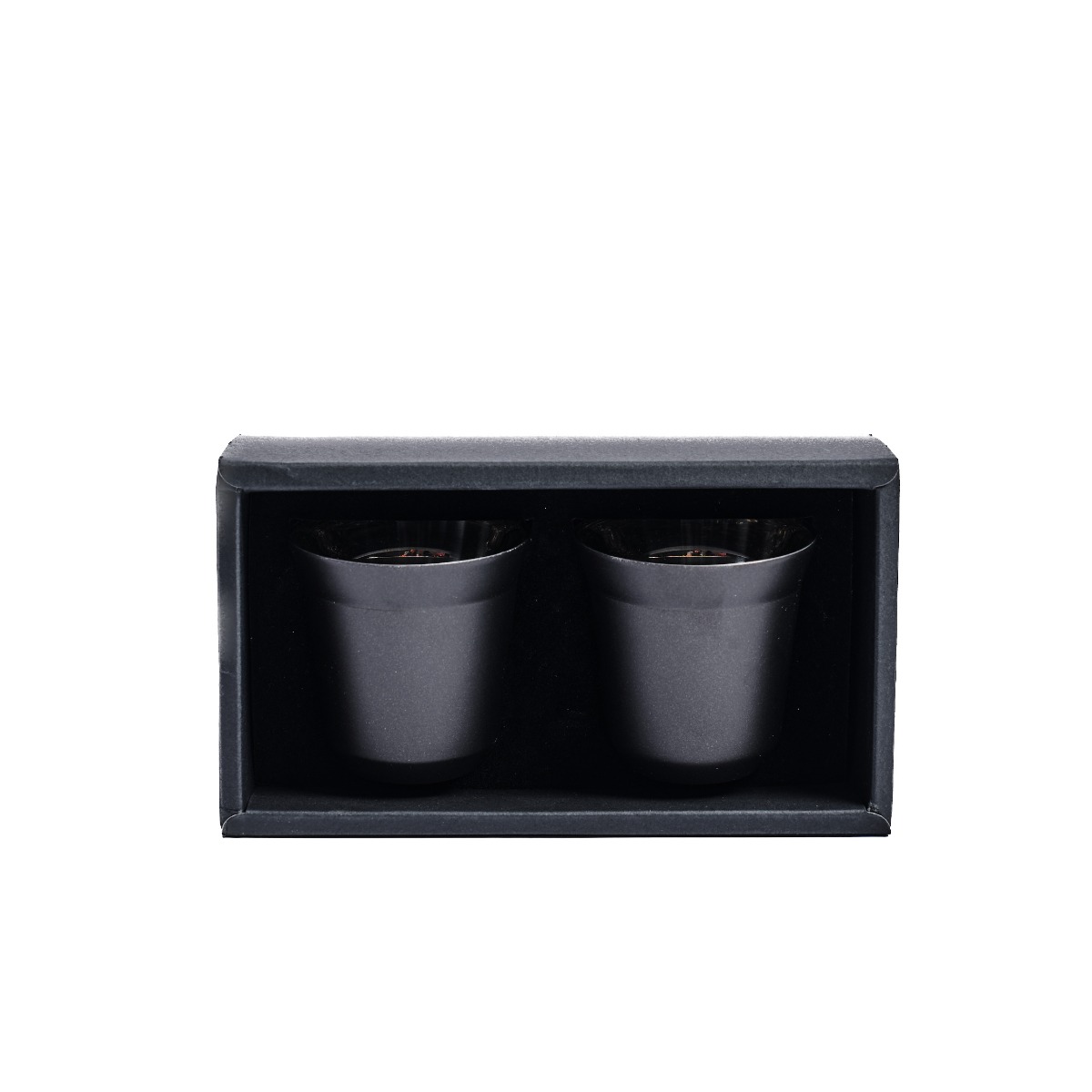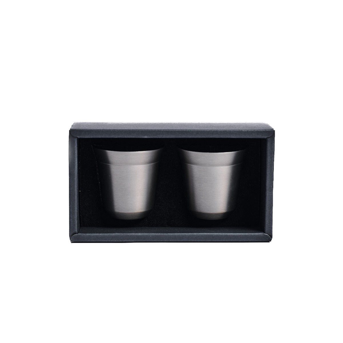 2pcs stainless steel 80ml expresso cups set. Sturdy and smooth unbreakable and safe for longterm use. Nonrusting lightweight 100% recyclable Double wall design to keep drinks hot or cold for hours. Product Size 6.2x6.1cm (diameter). Packaging Paper Box