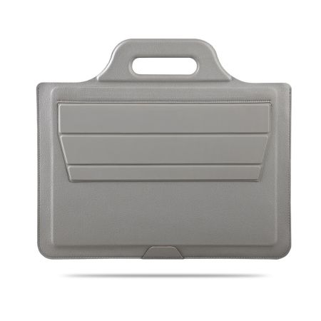 Handy Workstation laptop pouch stand made in recycled PU material. Can fit up to 14 laptop. Product Size 38.1x33.2. Packaging Kraft Paper Box