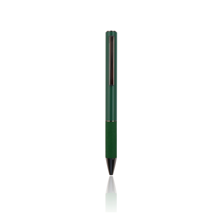 Metal with a recycled PU material in the lower body and paint coated on the clip part. Underneath is a chrome plating for engraving effect. Product Size 13.7x1.1cm. Packaging Polybag