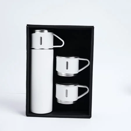 500ml vacuum flask keeps hot or cold drink for 812 hours with 2 pcs extra stainless steel cups with handle. Drinkset best for sharing. Leak proof light weight easy to clean and suitable for car cup holders. Product Size 25.3x18.4x6.9cm. Packaging Paperbox with sleeves