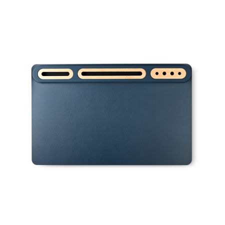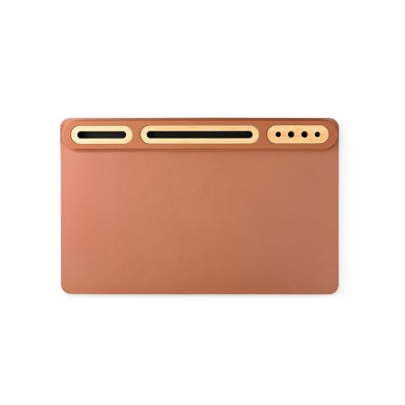 Desk mat organizer in a soft recycled PU Material with bamboo organizers tablet/ipad holder pen holder and business card holder.Product Size 55x35x1.5cm. Packaging Kraft Paper Box