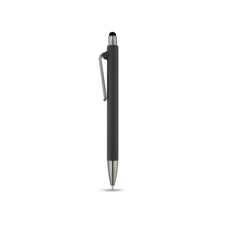 Rubberized barrel with UV grey tip clip and pusher stylus. Has semigel ink refill. Product Size 14.7x1.1cm. Packaging Polybag