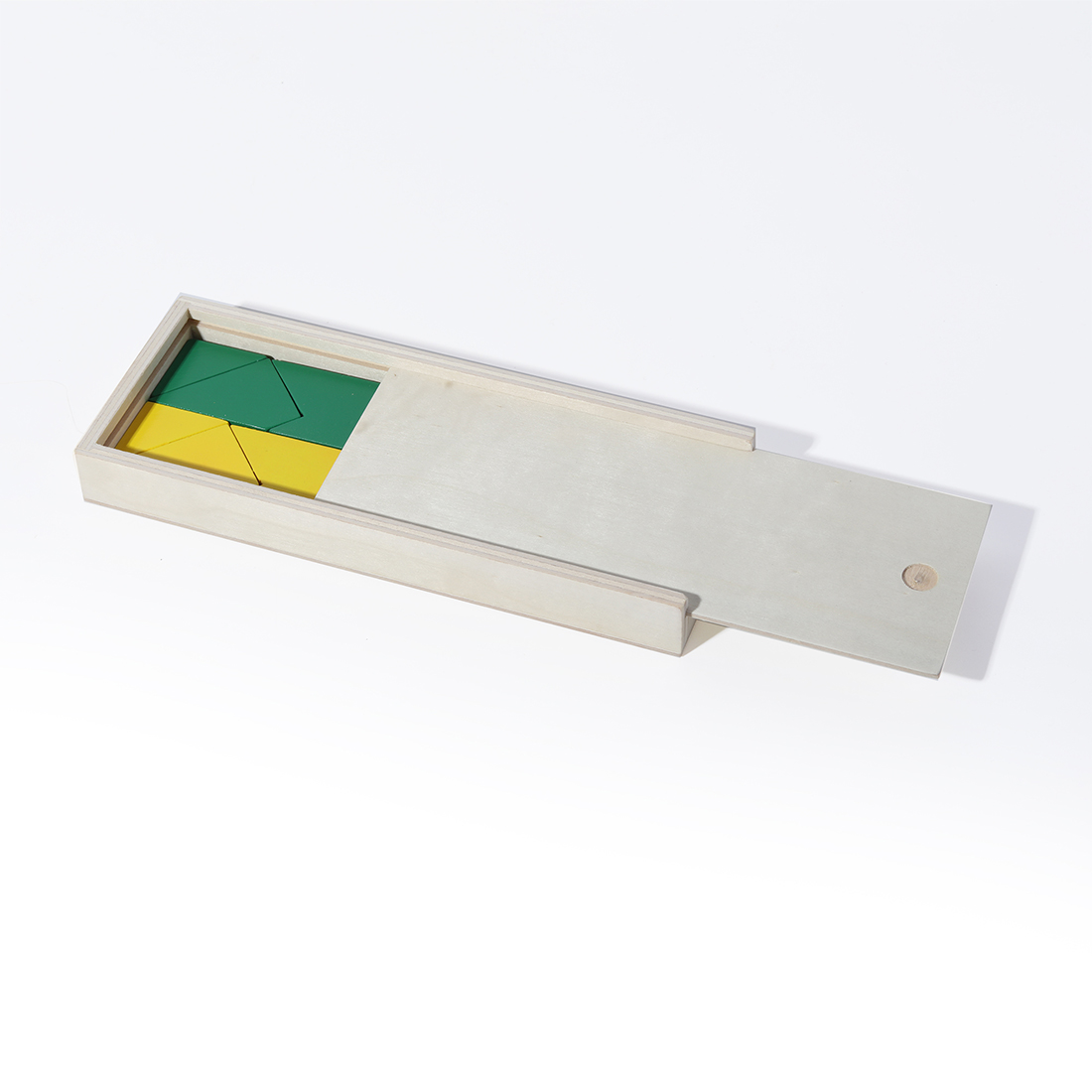 Wooden Puzzle in T form that can create into several shapes. Product Size 19.2x7.3x2.3cm. Packaging Kraft Box