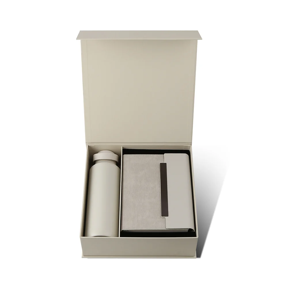 Premium Onboarding Gift Pack. A thoughtfully curated 4-piece set designed to make a strong first impression. Ideal for employee onboarding, appreciation, or corporate events. A practical and stylish set to welcome new team members. Set Includes 600ml vacuum insulated 304ss bottle, high quality PU binder notebook and metal pen. Product Size: 25.5x26.2x8.6cm. Packaging: Paper Sleeve