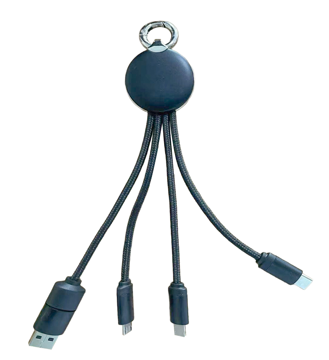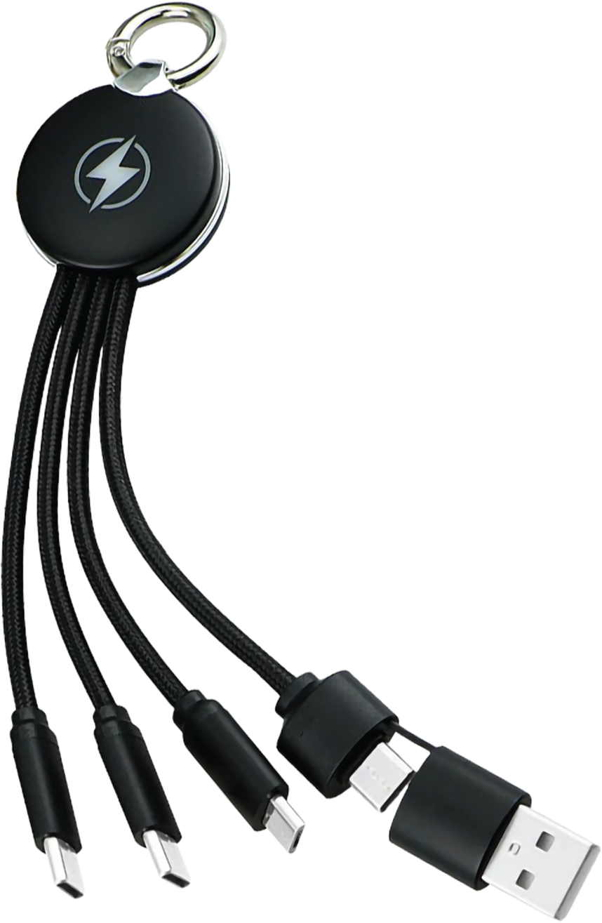 The Light-Up Logo Charging Cable is a long 3-in-2 cable compatible with Android, iOS, and Type-C devices. It features a light-up logo for added style and branding. The cable measures 34 × 165 × 10 mm and can be customized using engraving, UV printing, or screen printing.