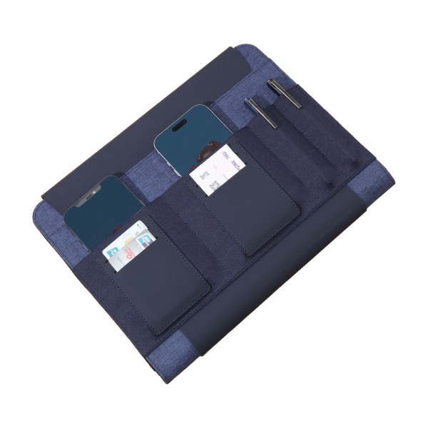 The FOLD PRO Portable Tech Organizer is a flexible, attachable pouch designed for devices, gadgets, and laptop accessories. Ideal as a desk sleeve, gadget case, or backpack insert, it is perfect for office, home, and work-from-home essentials. The organizer measures 330 × 265 × 20 mm and can be customized with screen printing or debossing.