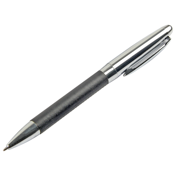 The Metal and Leather Pen is a promotional metal pen half-covered with PU leather. It measures 132 × 10 mm and can be customized with UV printing, screen printing, or engraving.