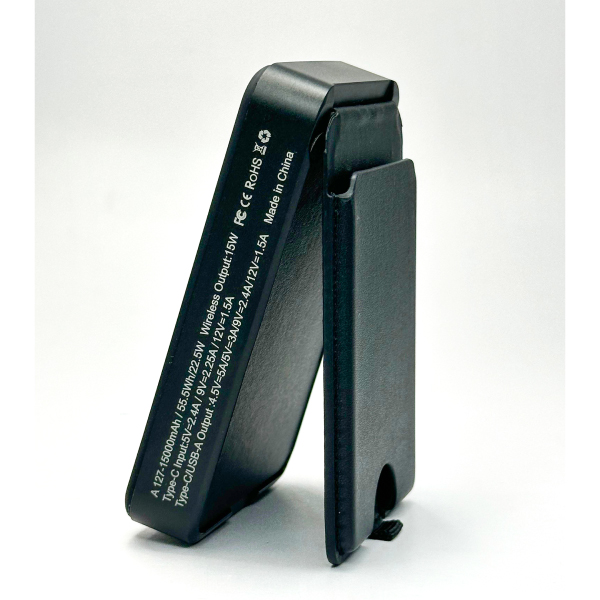 Unique handy mobile accessory that gives power to your mobile and keeps your card all in one 15000 mAh/46.2Wh/PD20W Type-C Input:5V=2.4A/9V=2.25A/12V=1.5A,Type-C/USB-A, Output :4.5V=5A/5V=3A/9V=2.4A/12V-1.5A Wireless Output: 9V-1.67A (Max 15W) Product size: 10.5x6.5x2.2.5 cm Printing Option : Engraving