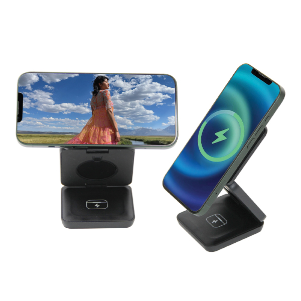 MULTIFUNCTIONAL MAGNETIC WIRELESS CHARGER Compact & foldable Charger earbuds smart watches megasafe wireless charging works horizontally & vertically, Input Interface: Type-C Input: 5V/3A 9V/3A Output: 15W/10W/7.5W/5W/3W Printing Option :Engraving, Screen Printing