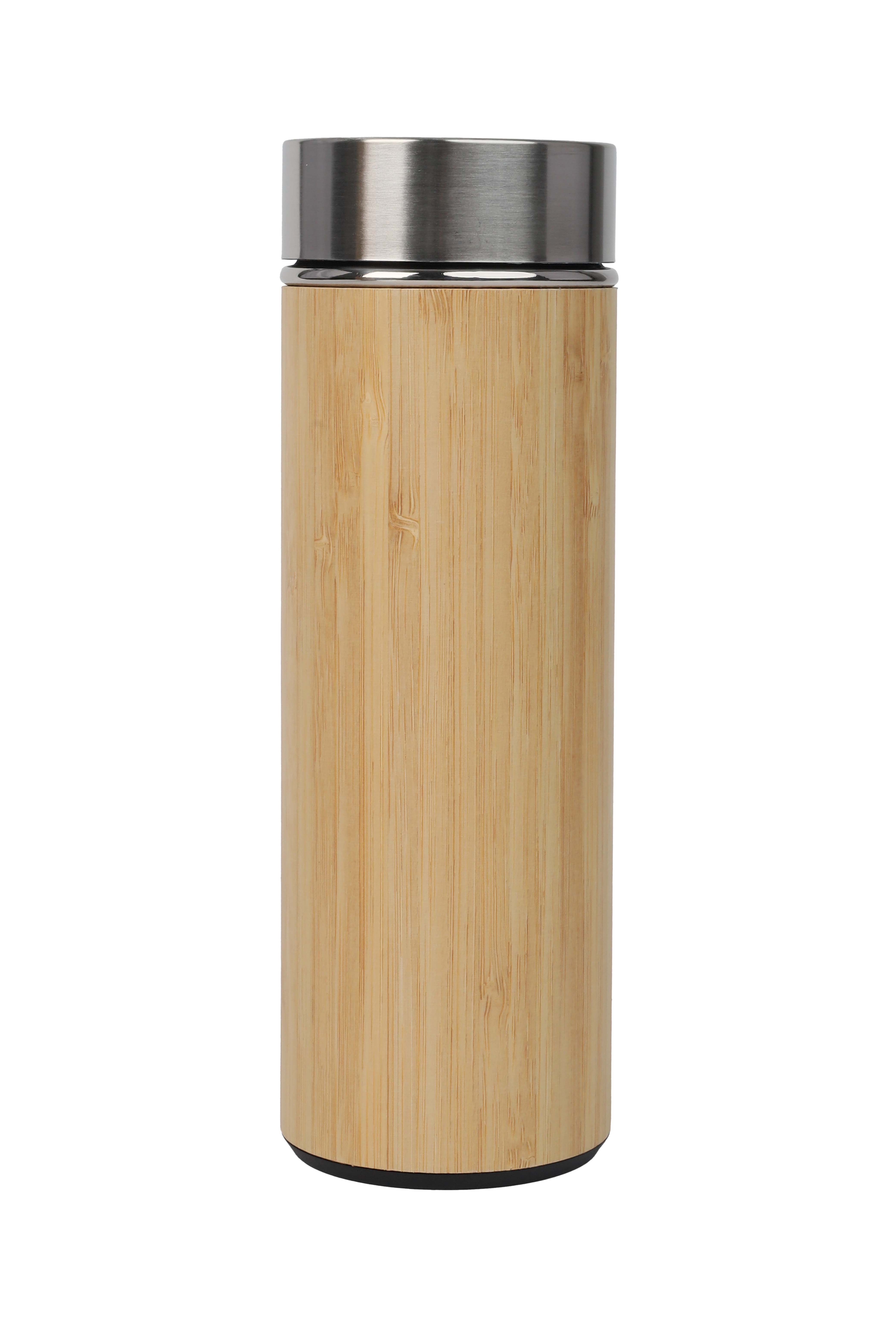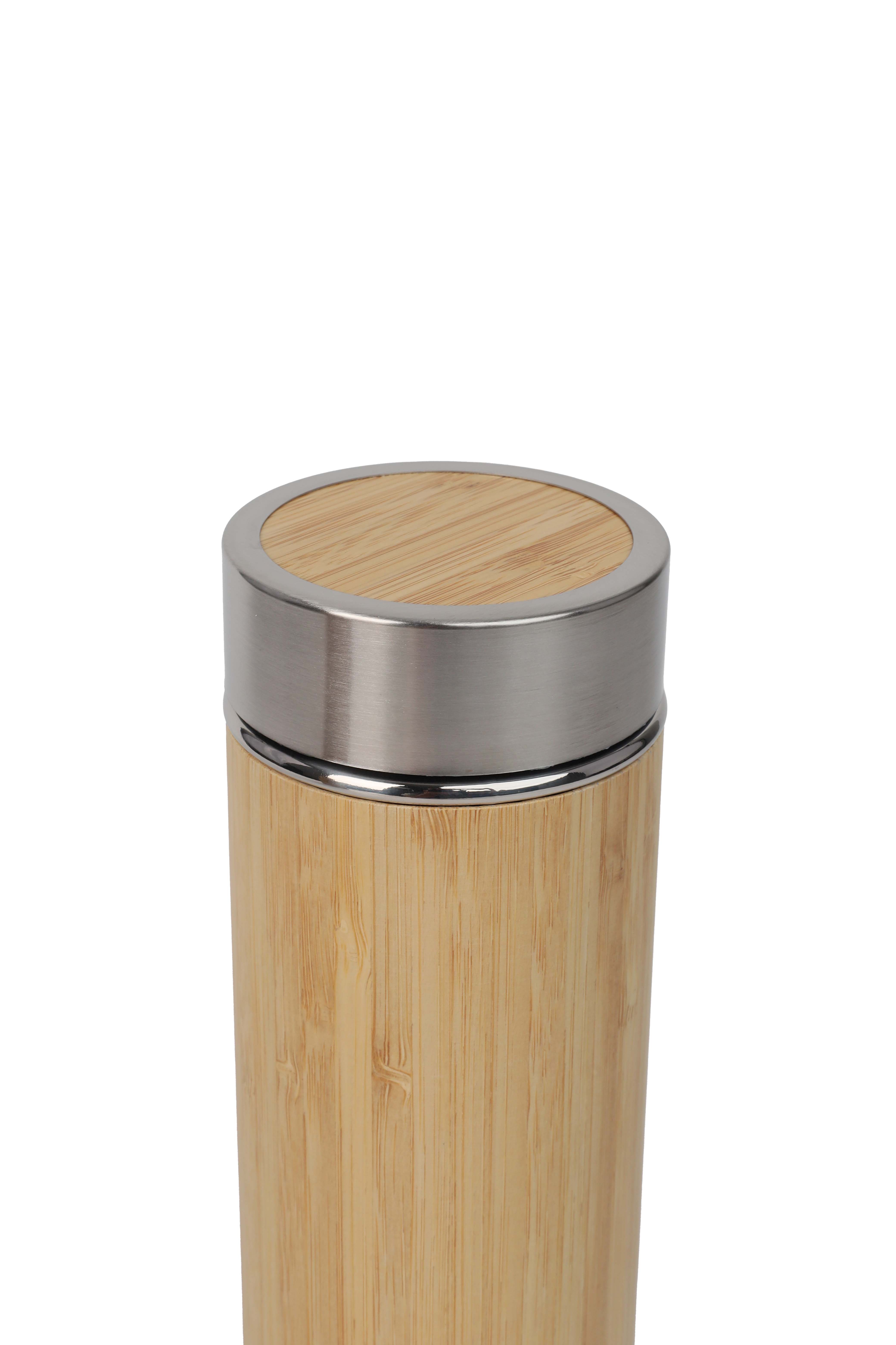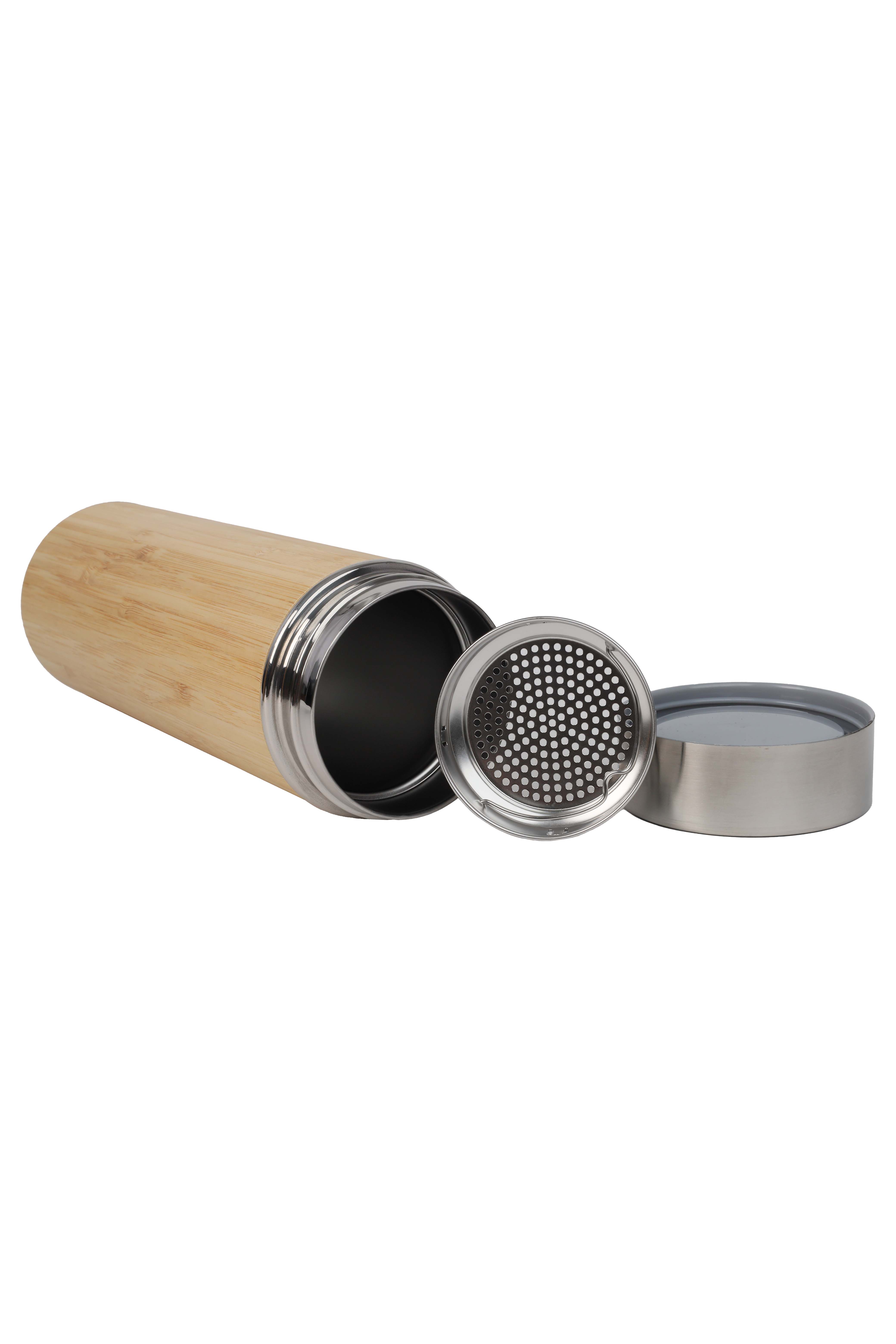 -Material: Stainless Steel + Bamboo -Vacuum Insualted -Bamboo Exterior -Bamboo Wrapped Lid -Comes with a Tea Infuser