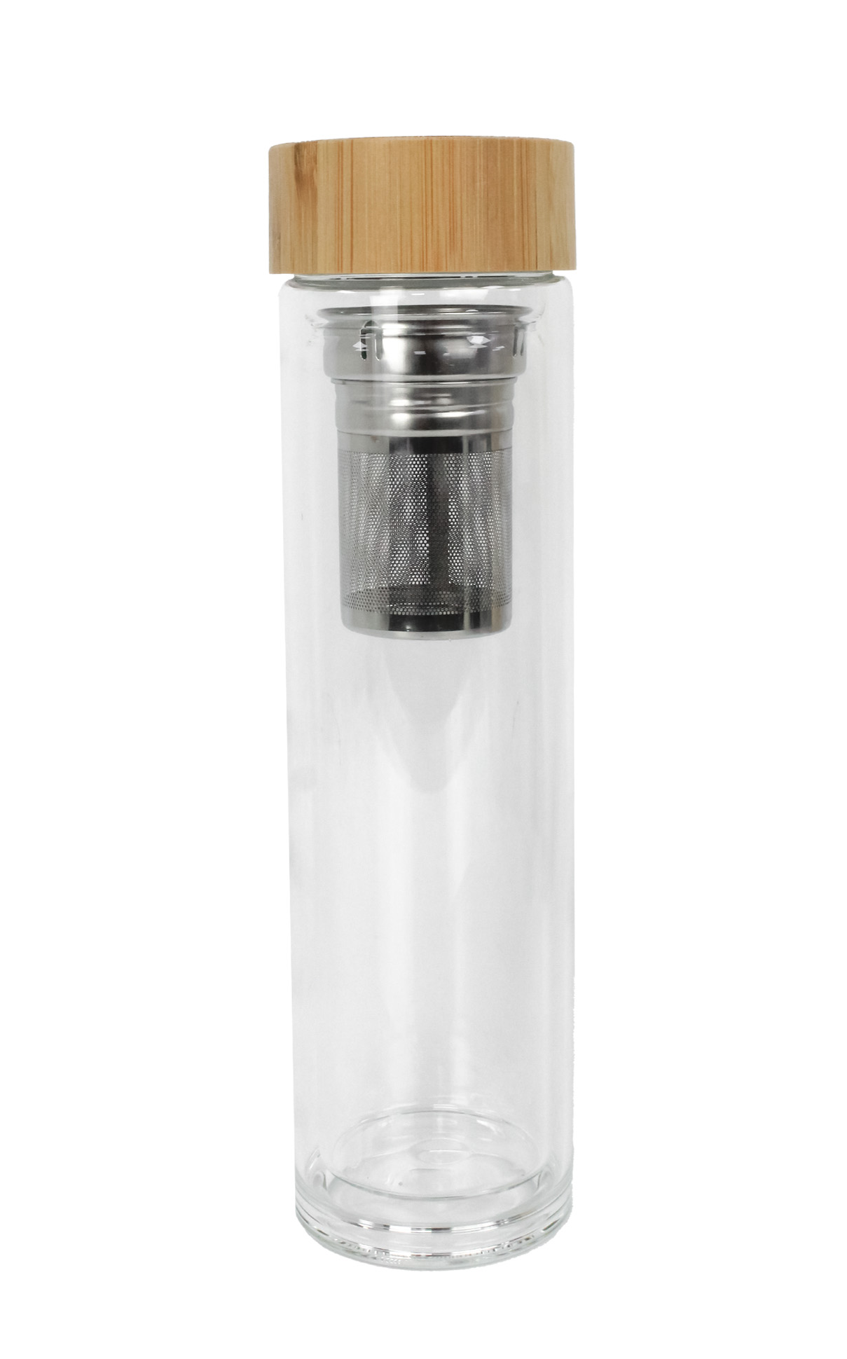 -Material: Borosilicate Glass -Double-walled -Fruit & Tea Infuser -Bamboo Lid -Leak-free
