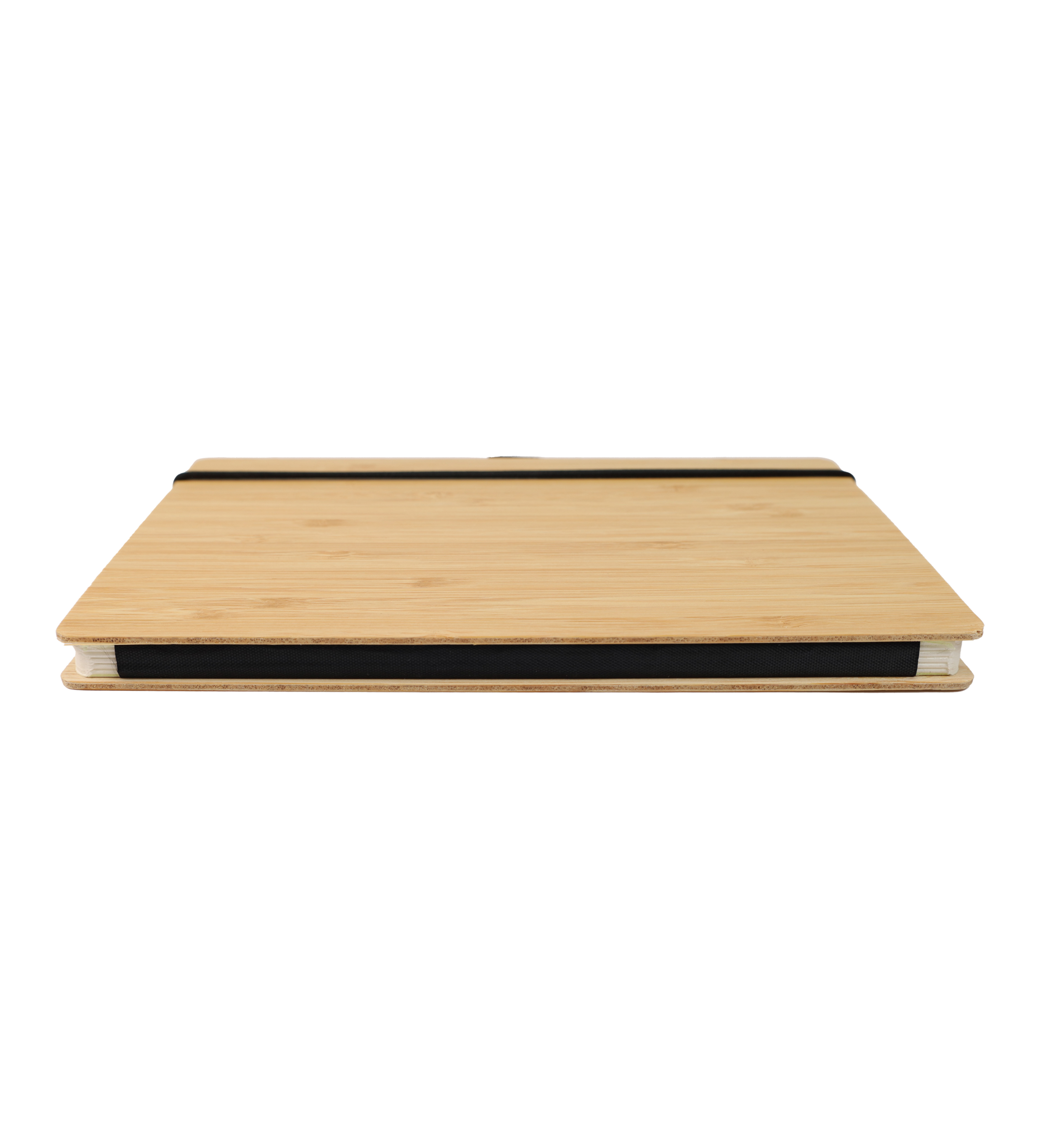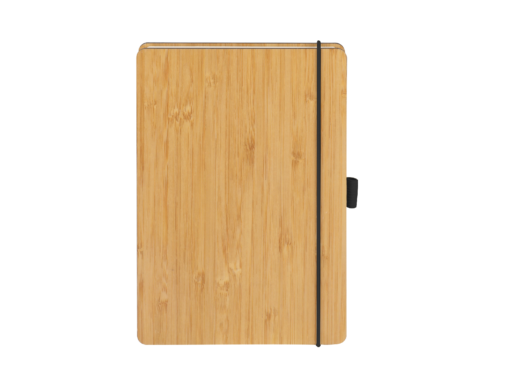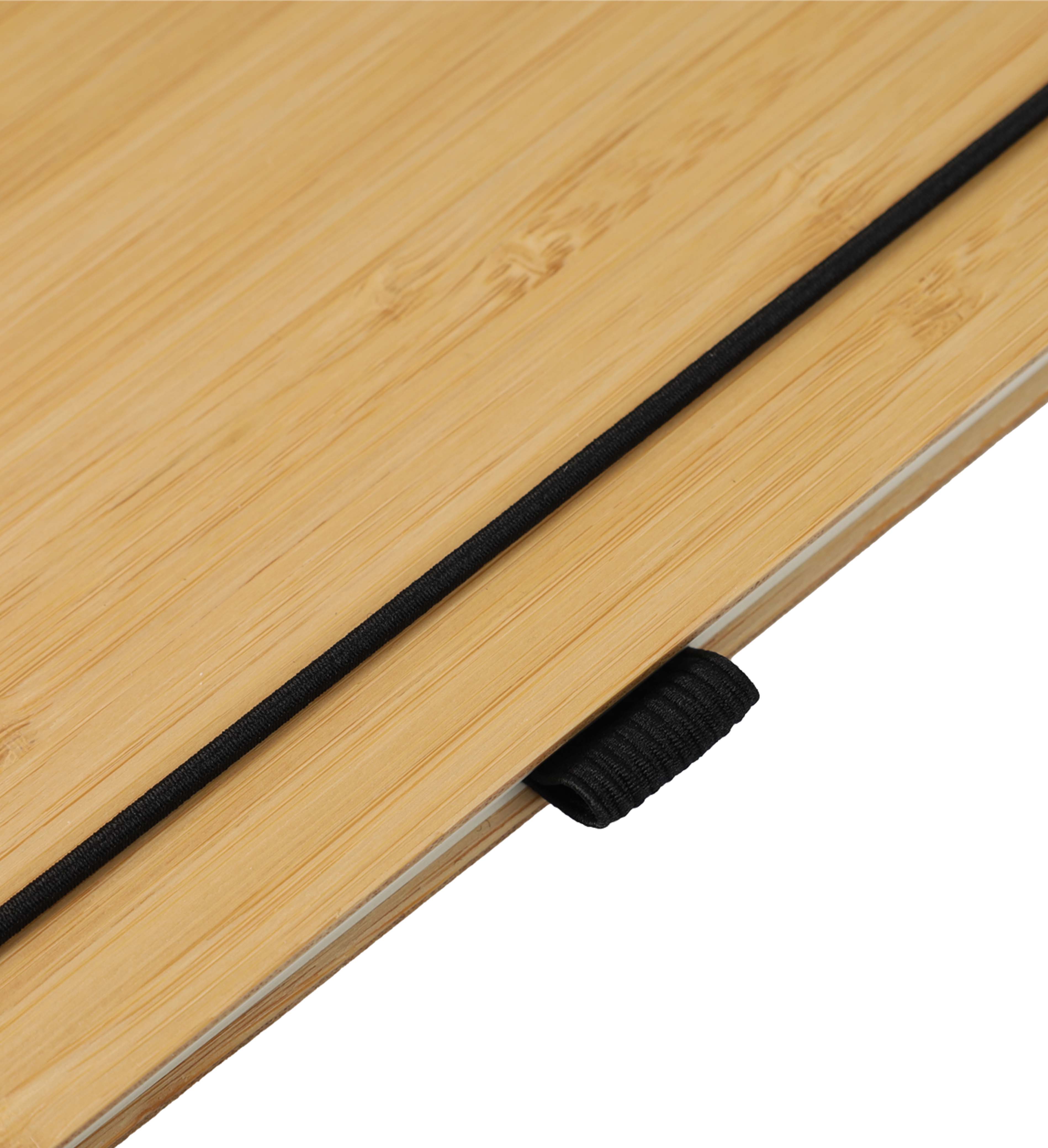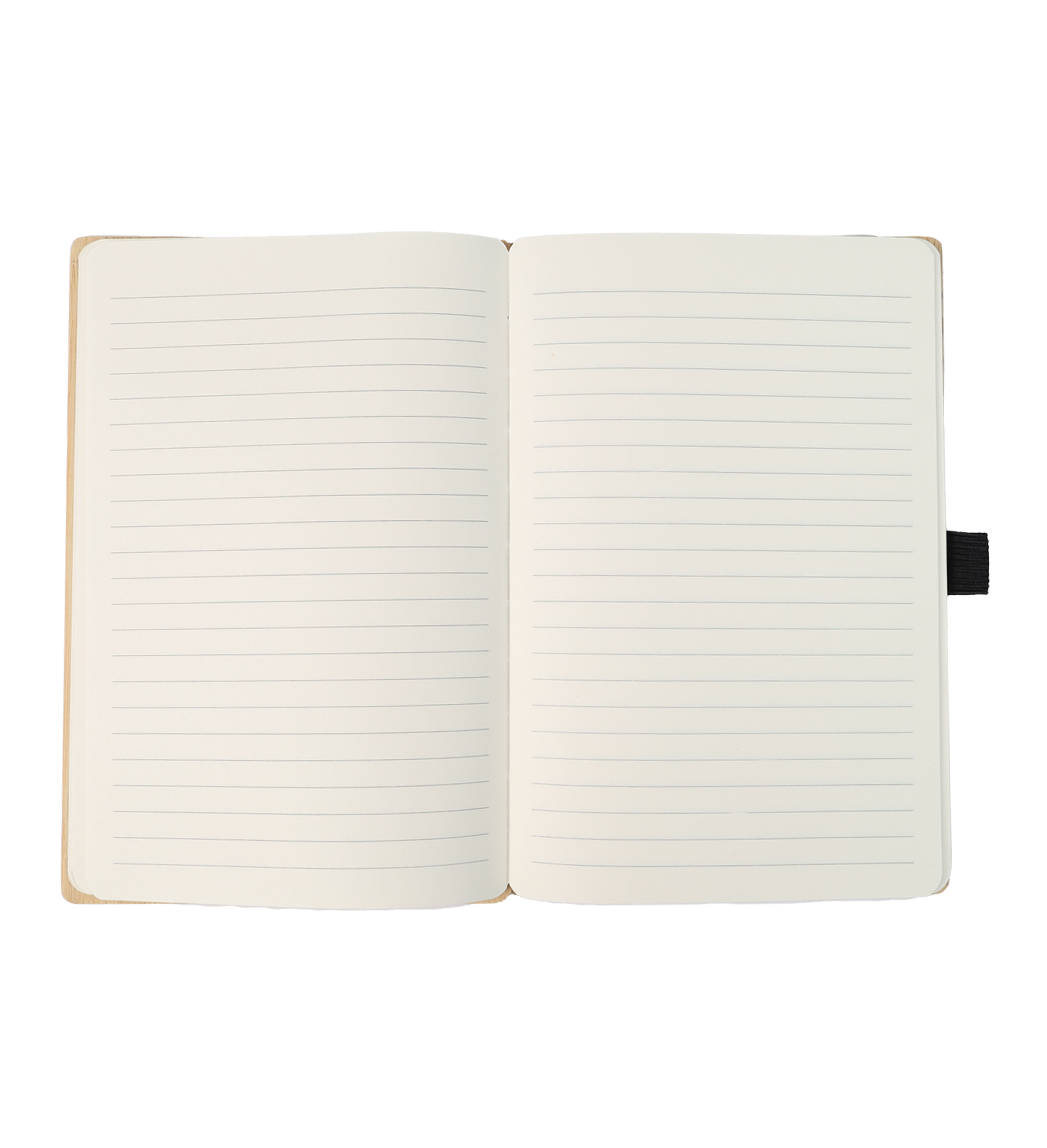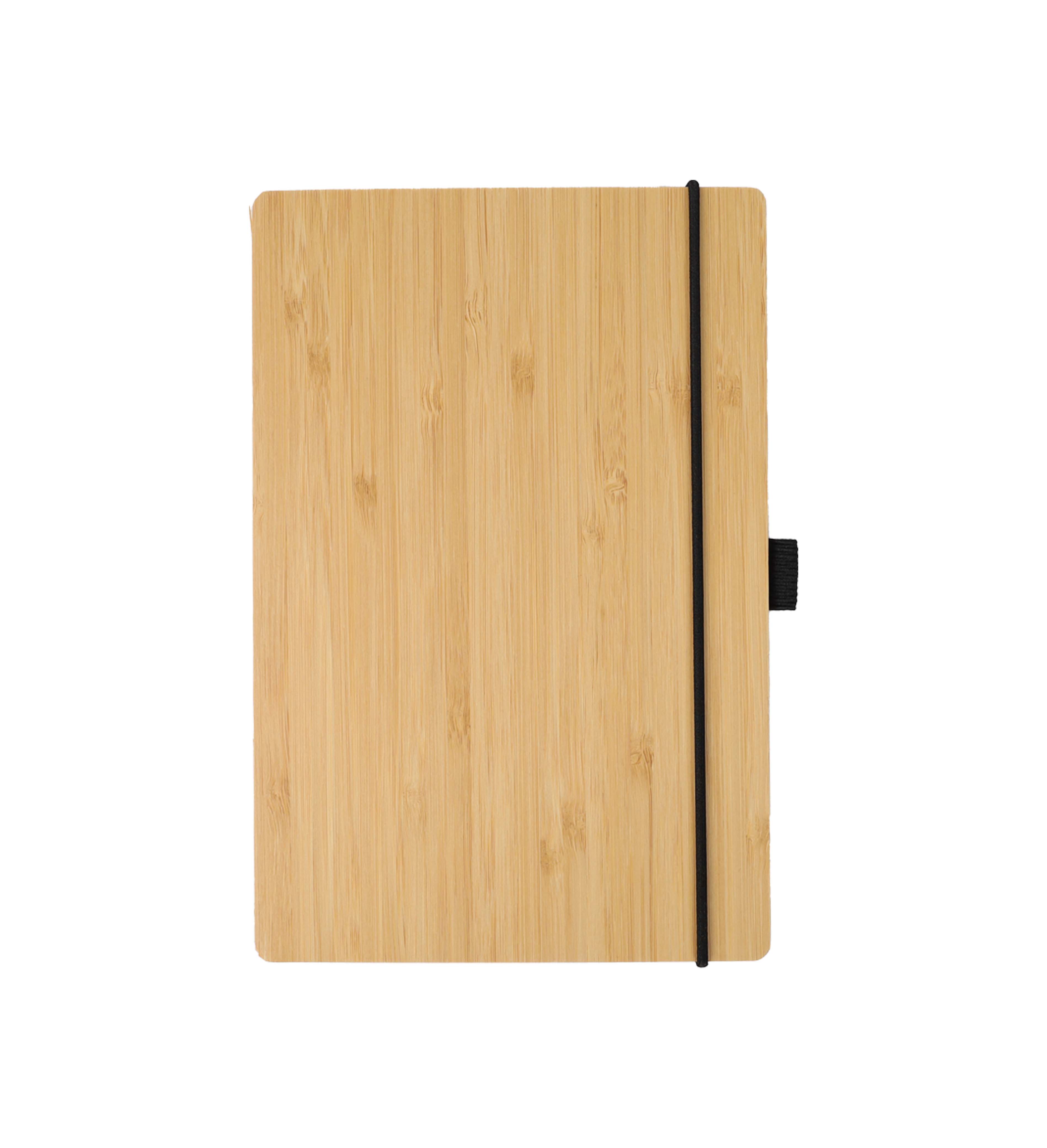 -Eco-friendly Gift Set -A5 Bamboo Notebook with 96 Single-lined Cream Sheets -Notebook with Elastic Closure & Pen Loop -Push Action Pen with Bamboo Barrel -Metal Clip -Chrome Plated Plastic Trims