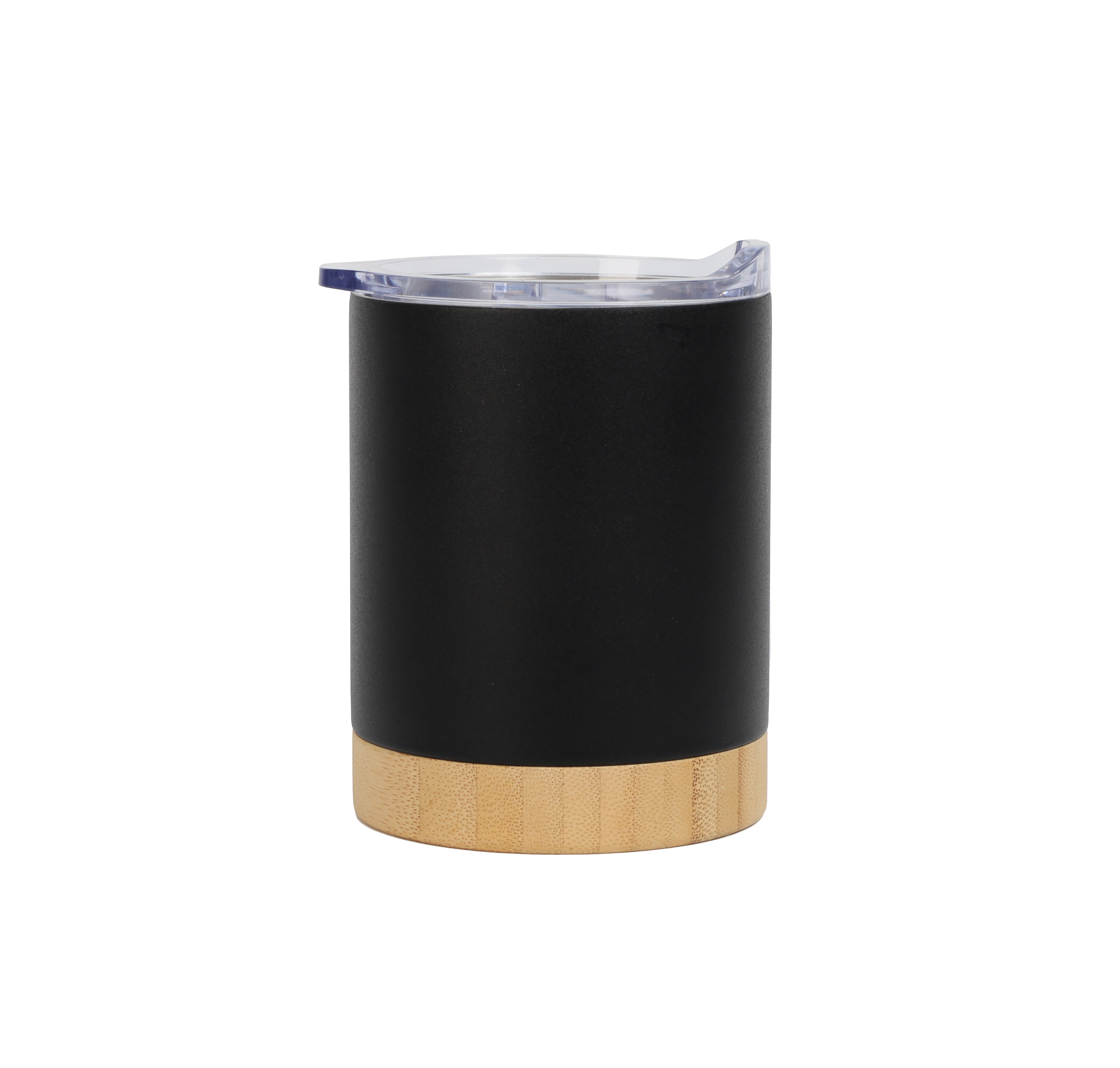 -Material: Powder-coated Stainless Steel -Bamboo Base -Transparent Sip-open Lid -Leak-proof