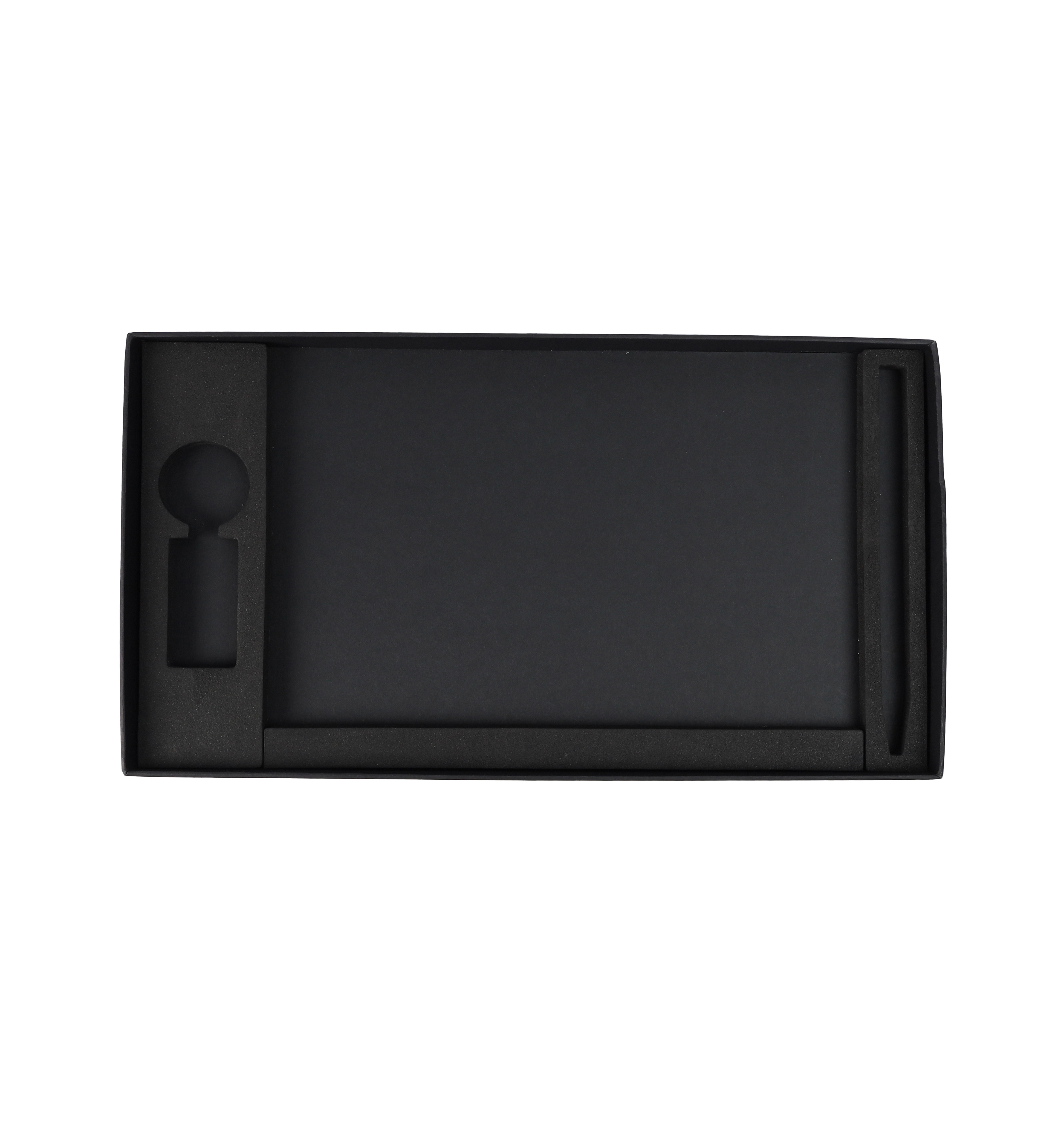 -Black Matte Box -Bamboo & Metal Ball Pen with Stylus -Bamboo & Metal Keychain -Bamboo & PU Notebook