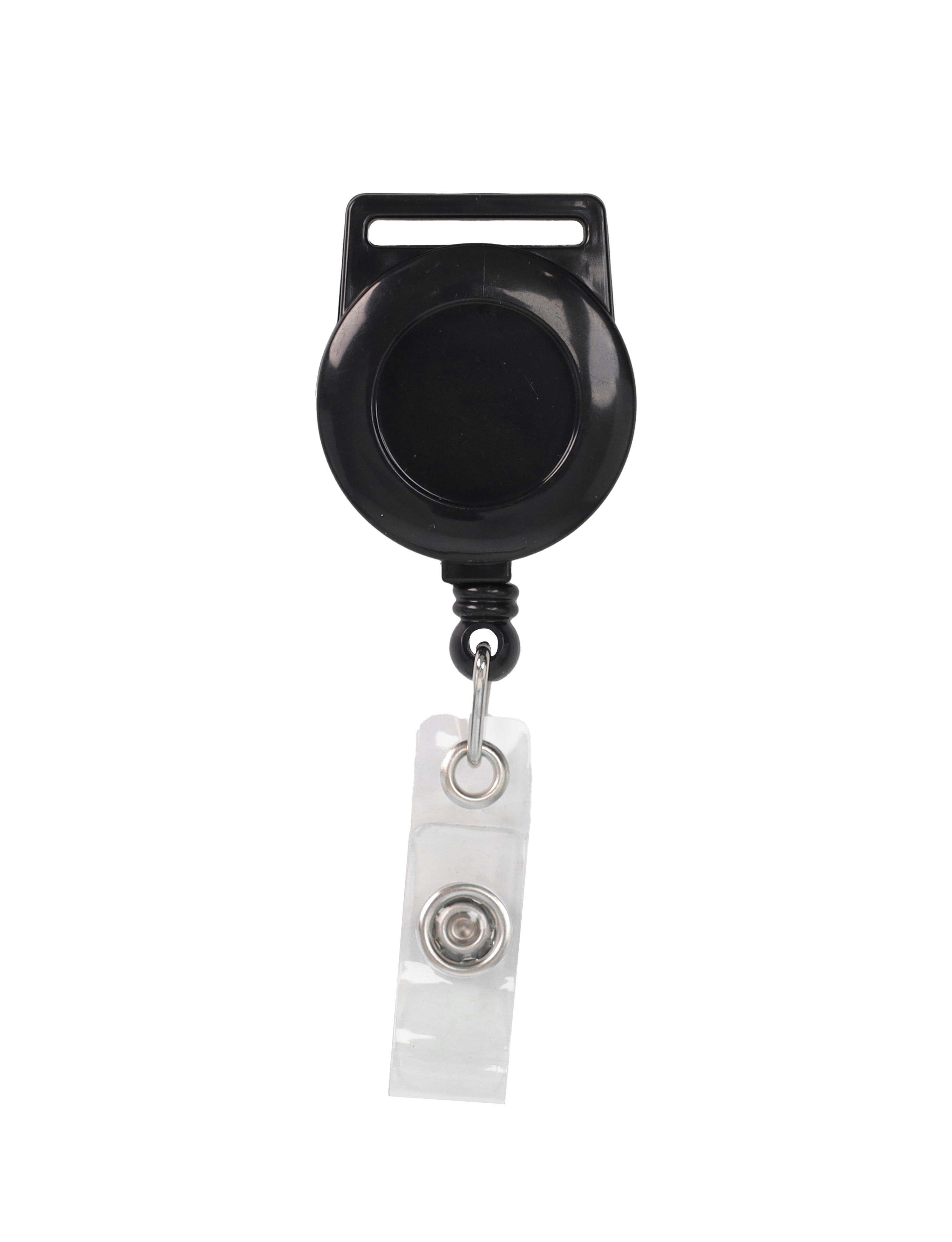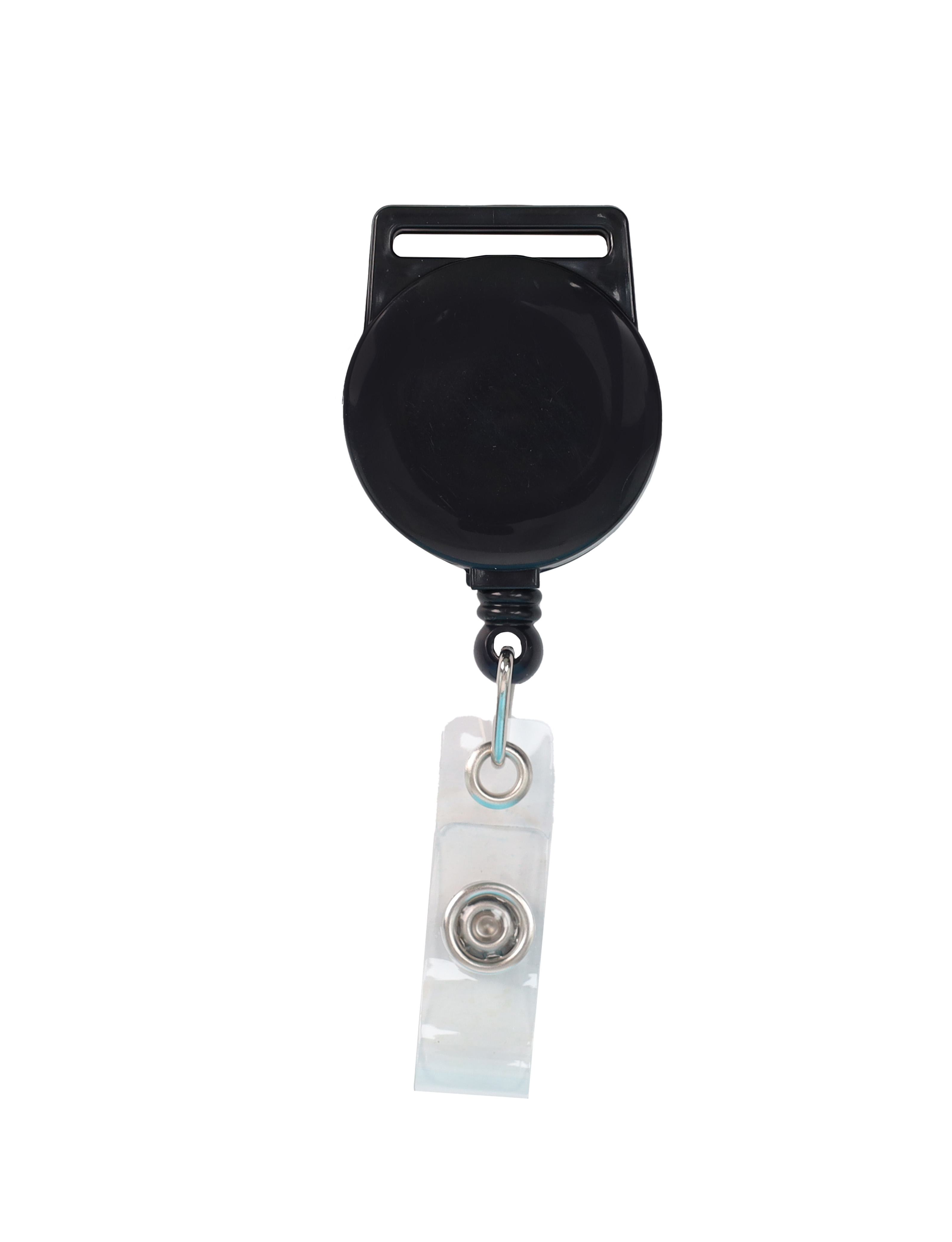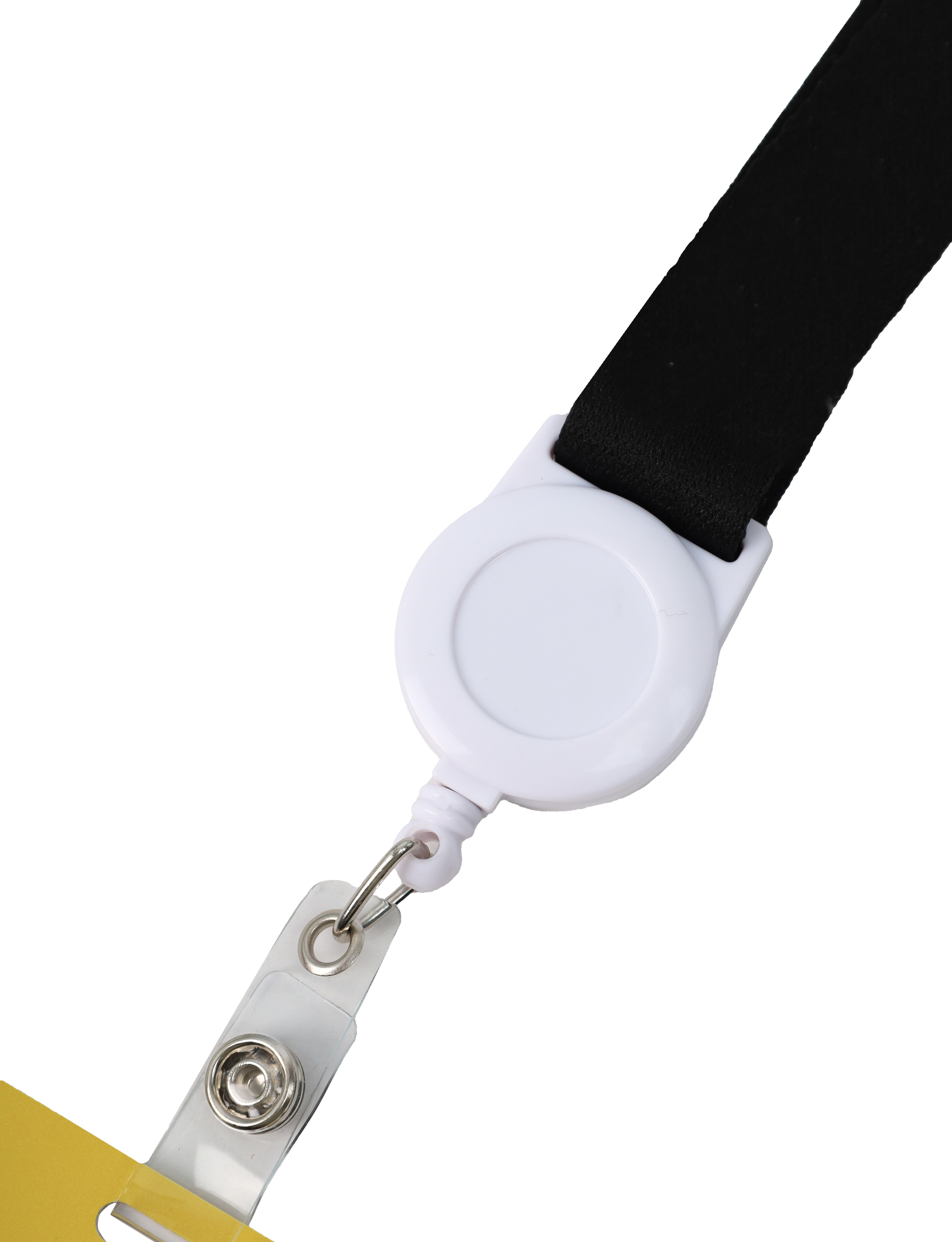 -Material: Plastic + PVC -Clip on the Back -Clip on the Top for Lanyards of up to 20 mm -Sizeable Imprint Area -Attached with a PVC strap for ID badge or card, keys, etc