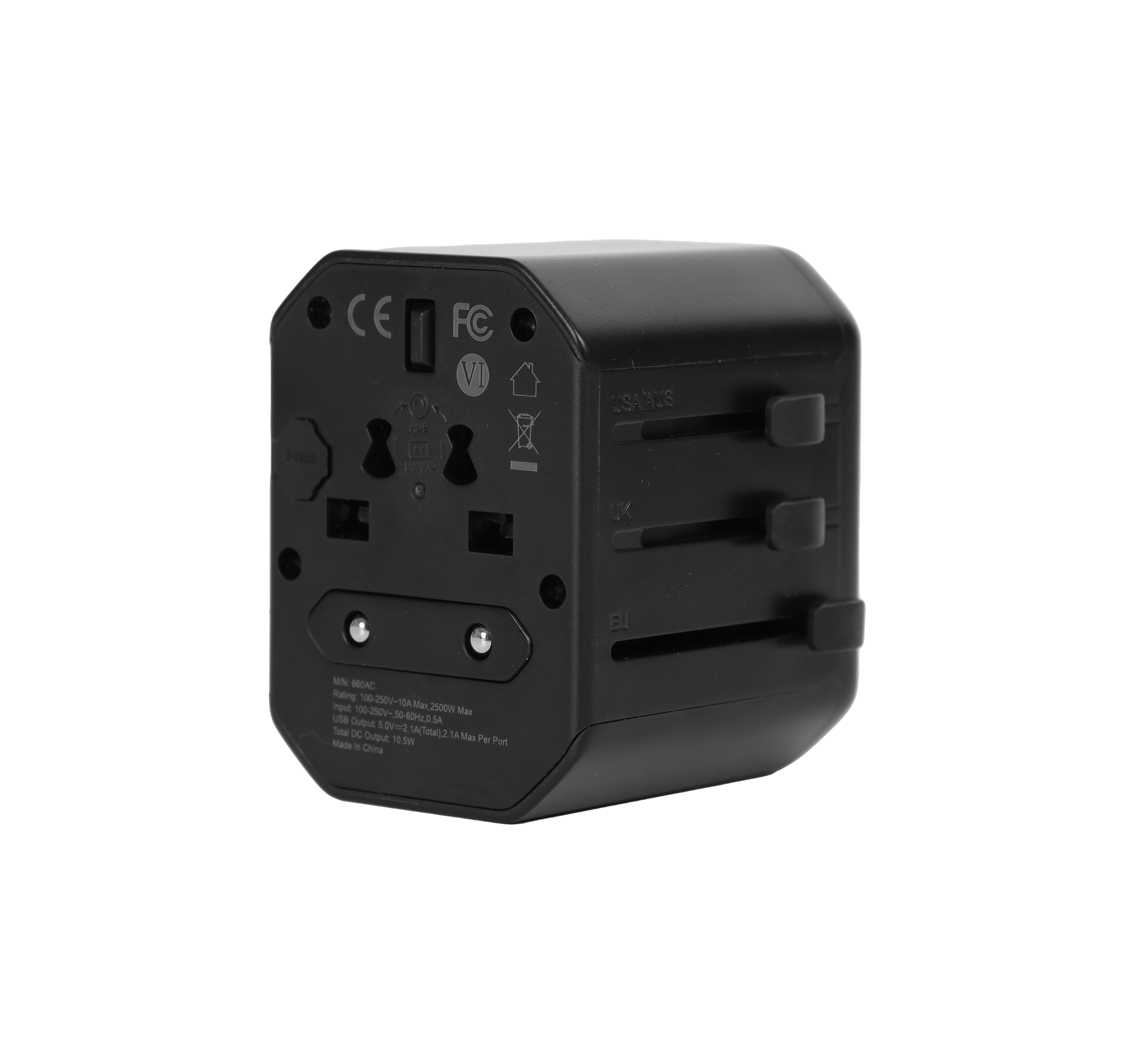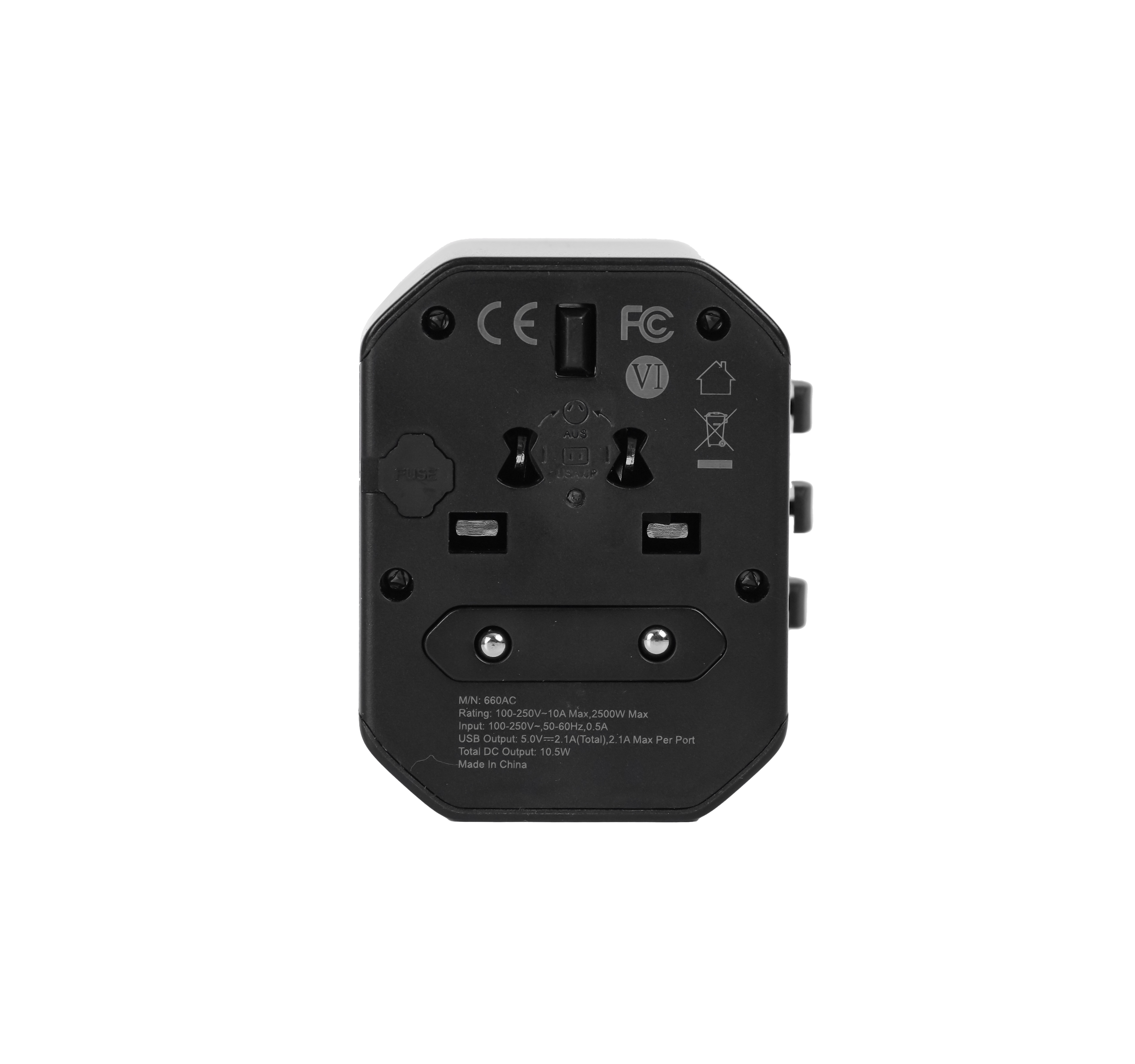 -ABS Material Material: Copper & Flame Retardant PC -10.5 W Output -Plug Type: UK, Europe, USA, Australia