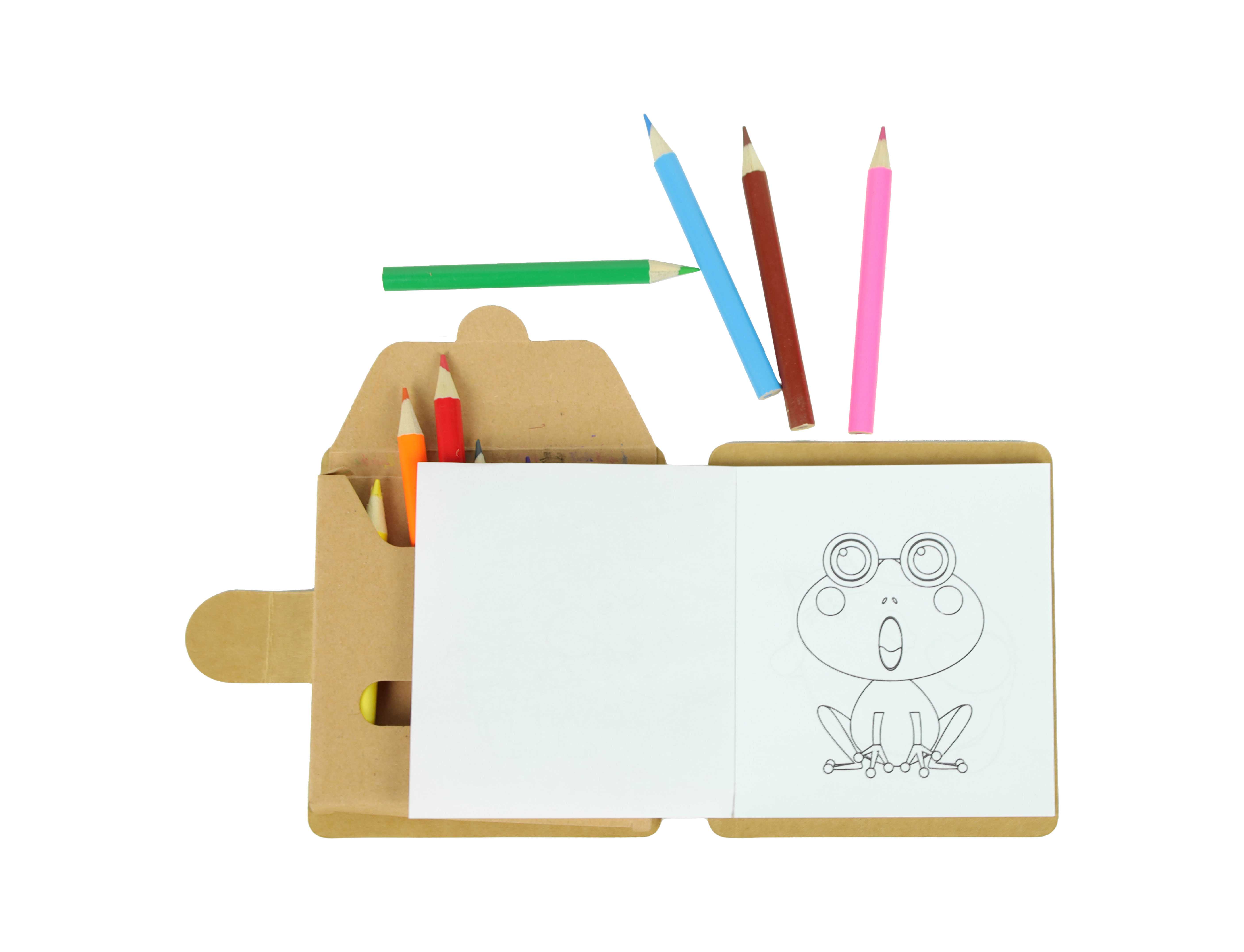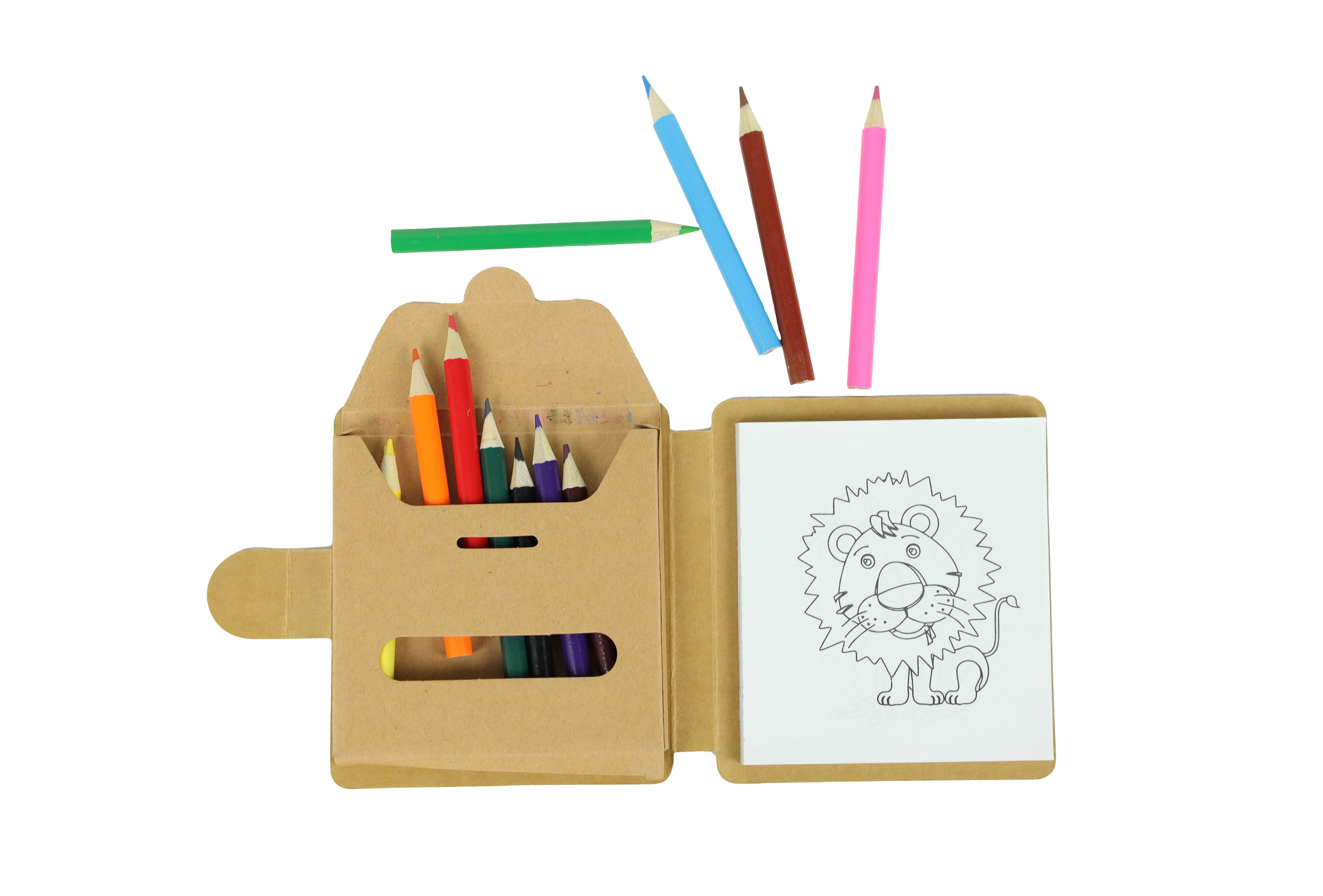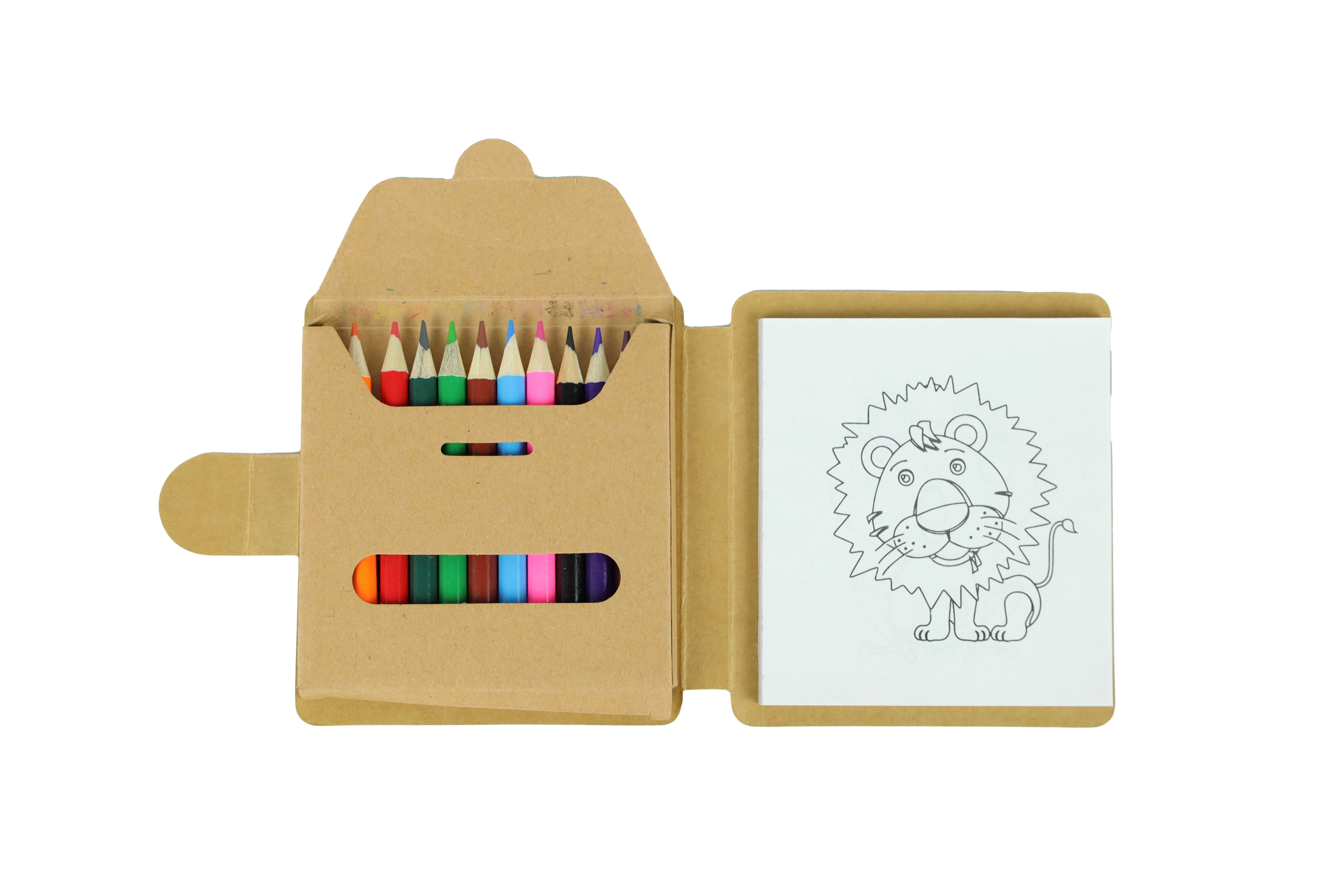-Mini Drawing Set -Material: Recyled Material -12 Bright Colour Pencils -12 Sheets with Patterns -28 Sheets of Blank Paper