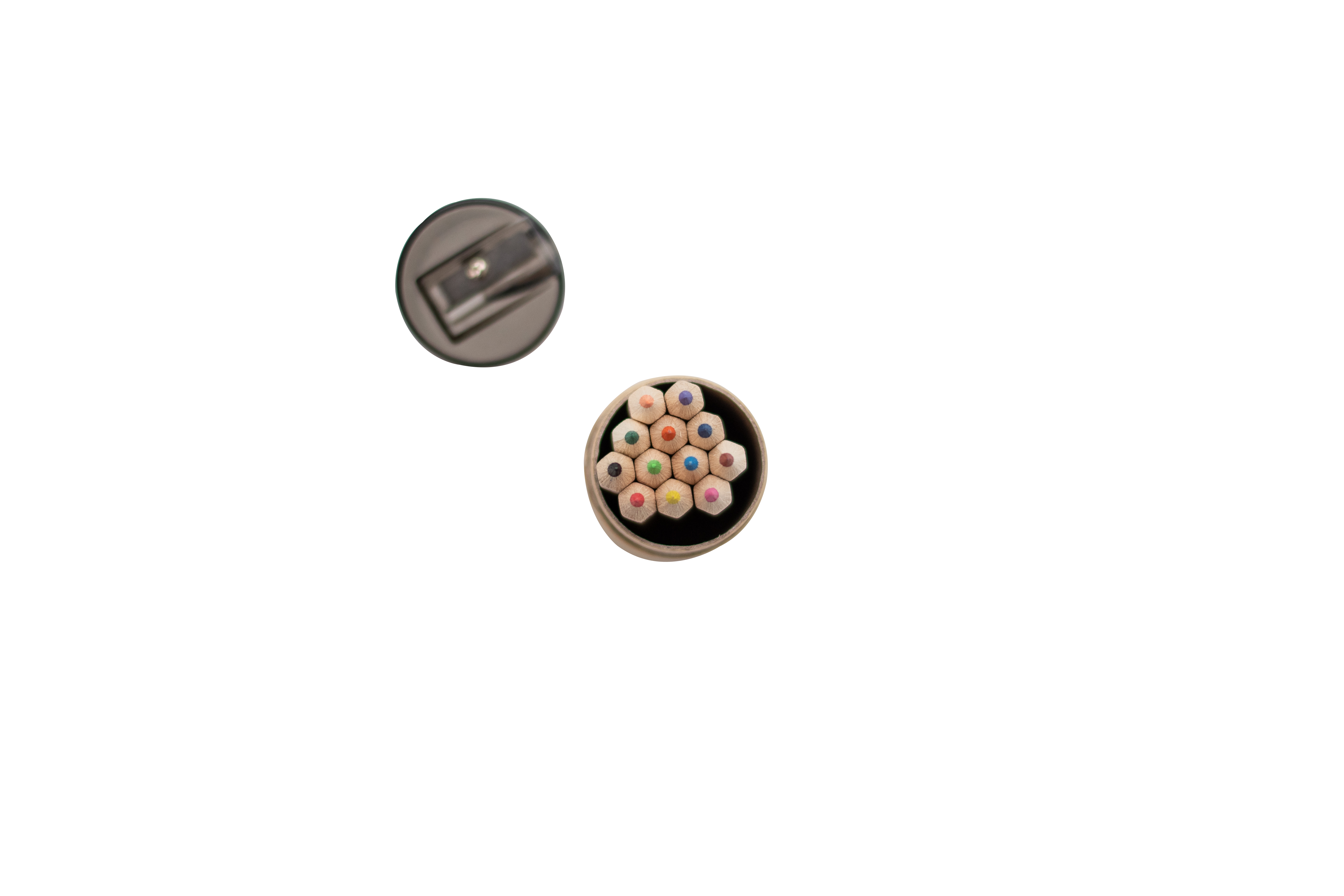 Set of 12 mini recycled colour pencils in a cylindrical eco friendly packing