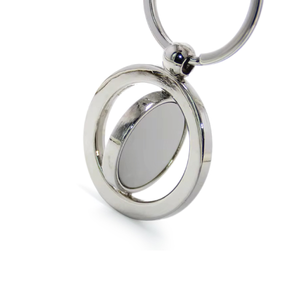 The Round Key Chain Rotating Metal Tag is a versatile promotional keychain featuring a spinning, double-sided medal design. Perfect for wholesale or DIY customization, it measures 62 × 28 mm and can be personalized using screen printing, epoxy, or engraving.