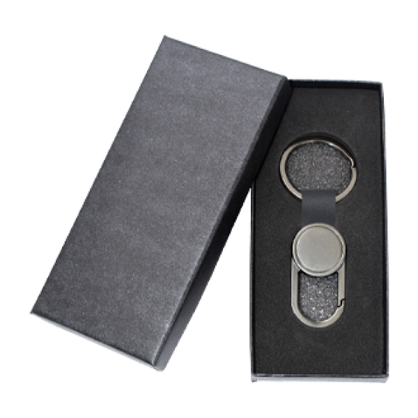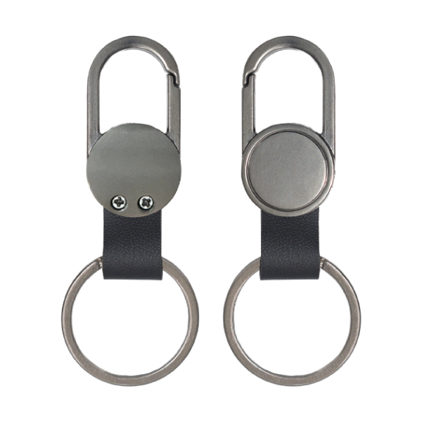 The Creative Leather Keychain is a stylish waist-hanging key holder with a metal key ring, ideal for party favors or gifts. It measures 90 × 23 mm and can be customized with screen printing or engraving.