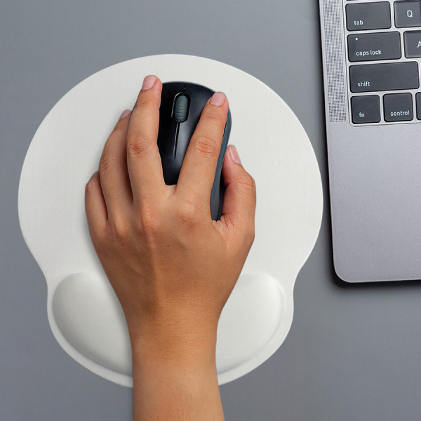 The Mouse Pad with Wrist Rest features an ergonomic shape and optimal height to keep your wrist in a natural position, preventing strain from twisted angles. Ideal for laptops and computers, it provides comfortable wrist support. The mouse pad measures 250 × 230 mm and can be customized with screen printing or sublimation.