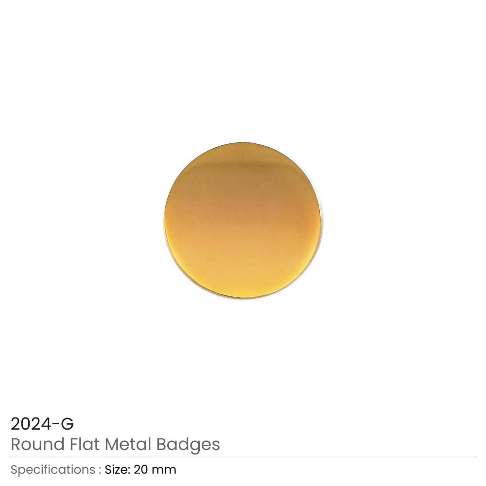 Round Flat Metal Badges 20mm - Gold