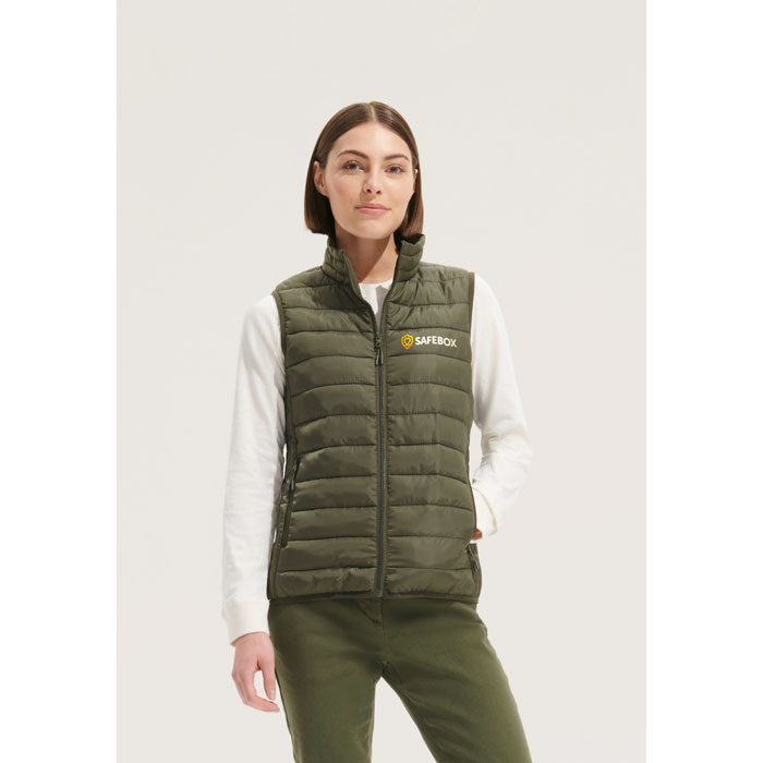 SOL'S STREAM BW WOMEN , women's Lightweight Bodywarmer, Outer Fabric And Lining: 100% Polyester, Padding: 100% Polyester Down. Front Fastening And Side Pockets With Tone-On-Tone Nylon Zip. Tone-On-Tone Metal Sliders With Black Fancy Zip Pullers. High Collar And Tone-On-Tone Elasticated Bias Binding At The Armholes And The Hem, Supplied With Storage Bag. About Sizes Matching, Please Refer To The Size Chart In The Product Documentation Section.