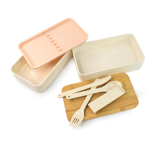 2-LAYER PLASTIC LUNCH BOX WITH CUTLERY SET