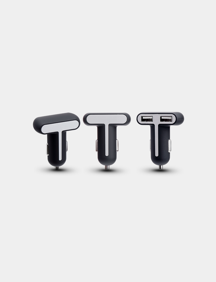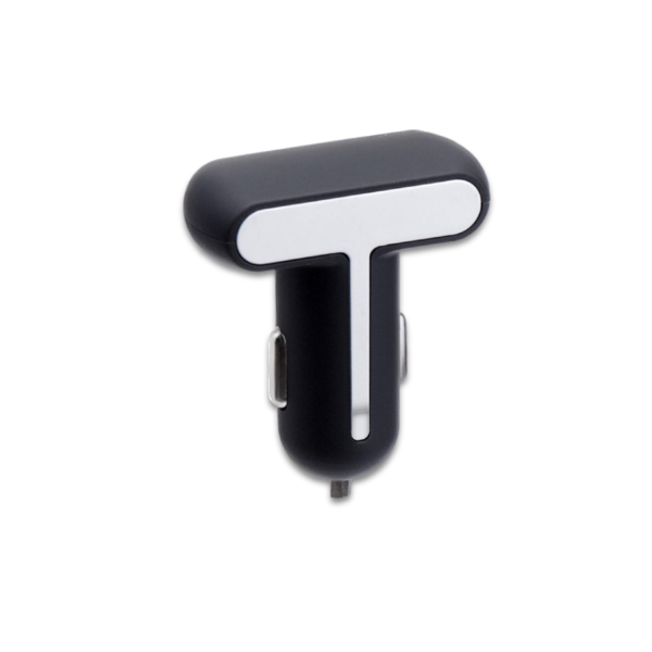 Dual USB car charger. ABS material.Product Size6.2x5.x2.1cm Packaging White Paper Box