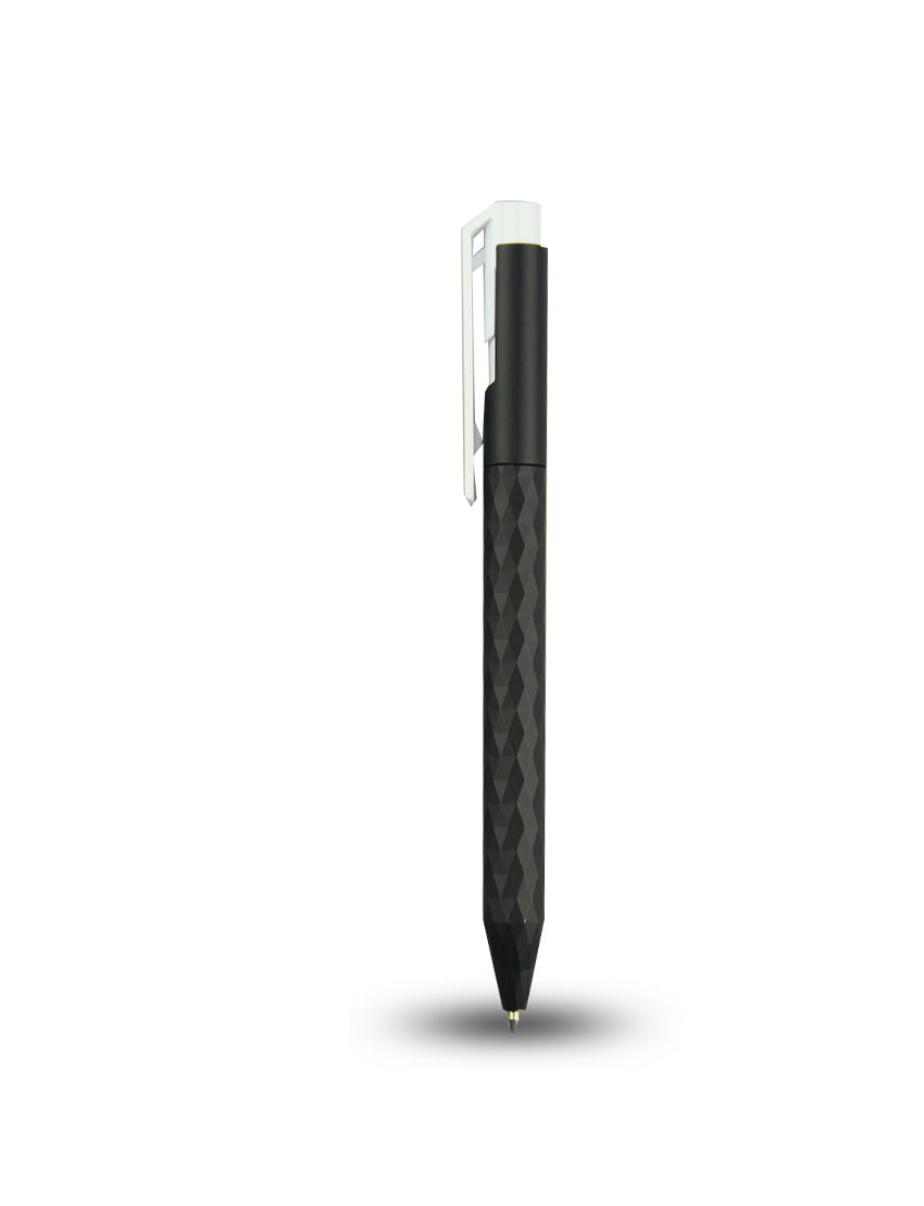 Push pen charaterize by 3D triangular structure on casing surface. It includes a big clip and jumbo parker refill. Blue ink. Product Size13.8cm length Packaging Polybag