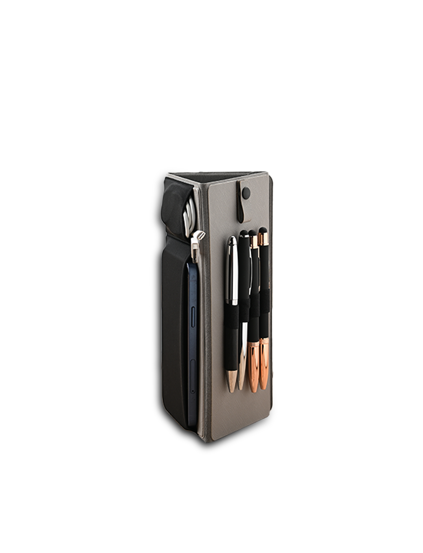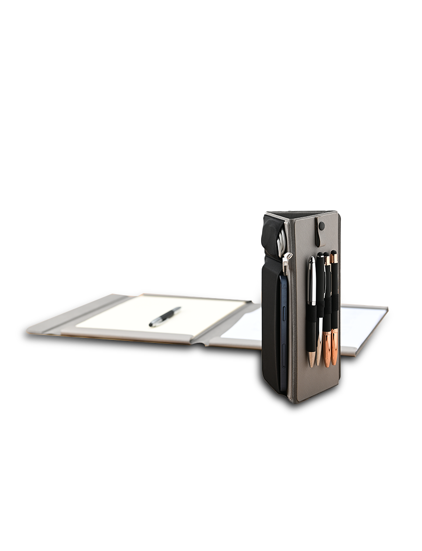 A4 Modular Portfolio made from a special PU material with detachable organizer 20 sheets notepad and magnetic flap closure. Has 2 Lycra pockets 2 card pockets and can hold 4 pens. Product Size 24x30x2.5cm Packaging Black paper box
