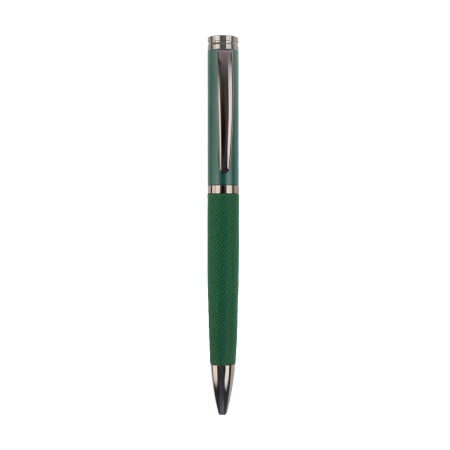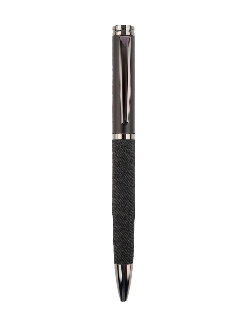 Metal with a recycled PU material in the body and paint coated on the clip part. Underneath is a chrome plating for engraving effect. Product Size 13.5x1.1cm. Packaging Polybag